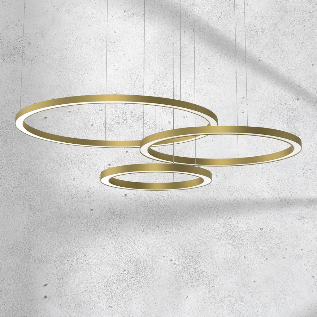 Závěsné LED svítidlo Galaxie ve zlatém provedení je součástí designové kolekce, která osloví všechny milovníky minimalismu a luxusu . Tento model se 3 světelnými kruhy o výkonu 3x85W LED poskytuje teplé světlo s barevnou teplotou 3500K , které vytváří útulnou, ale zároveň moderní atmosféru .