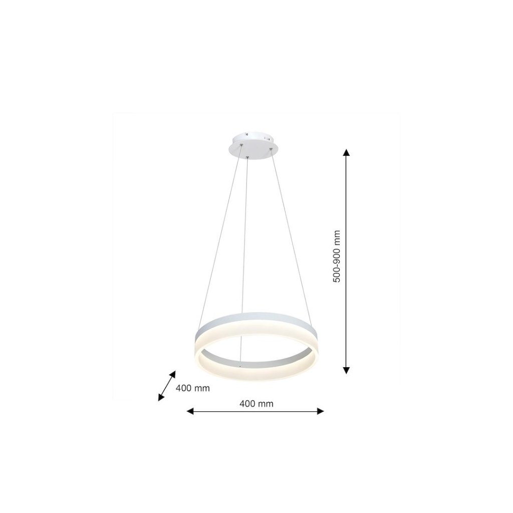 Svítilna má moderní, kruhový design o průměru 40 cm a je vyrobena z kvalitních materiálů – kovu a akrylu. Velkou výhodou je i možnost nastavení výšky závěsu v rozmezí od 50 do 90 cm , což umožňuje jeho snadné přizpůsobení různým výškám stropů i typu místnosti.