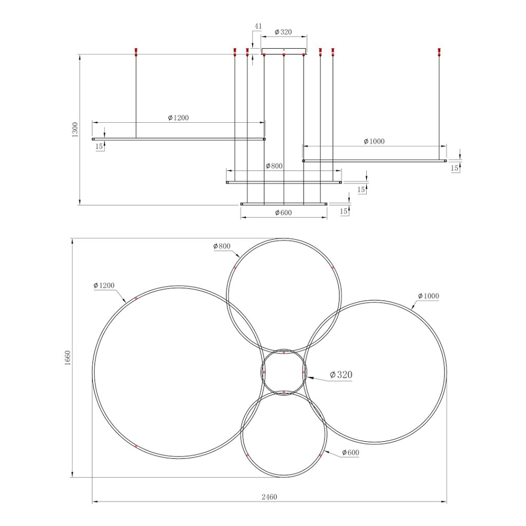 Závěsné LED svítidlo Saturno, 4x LED 120w, 4000k, g