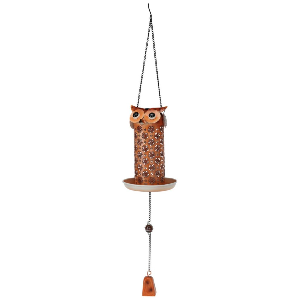 Závěsné solární krmítko pro ptáky Owl, 75x13 cm, kov, vícebarevná