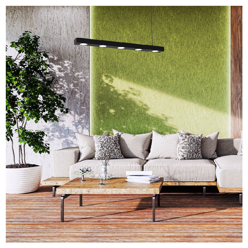 Model s pěti světelnými body a jednoduchým černým kovovým stínítkem je jako stvořený pro osvětlení pracovní desky, jídelního stolu nebo kuchyňského ostrůvku . Minimalistické linie a univerzální barevnost umožňují snadné začlenění svítidla do moderních, industriálních i skandinávských interiérů .