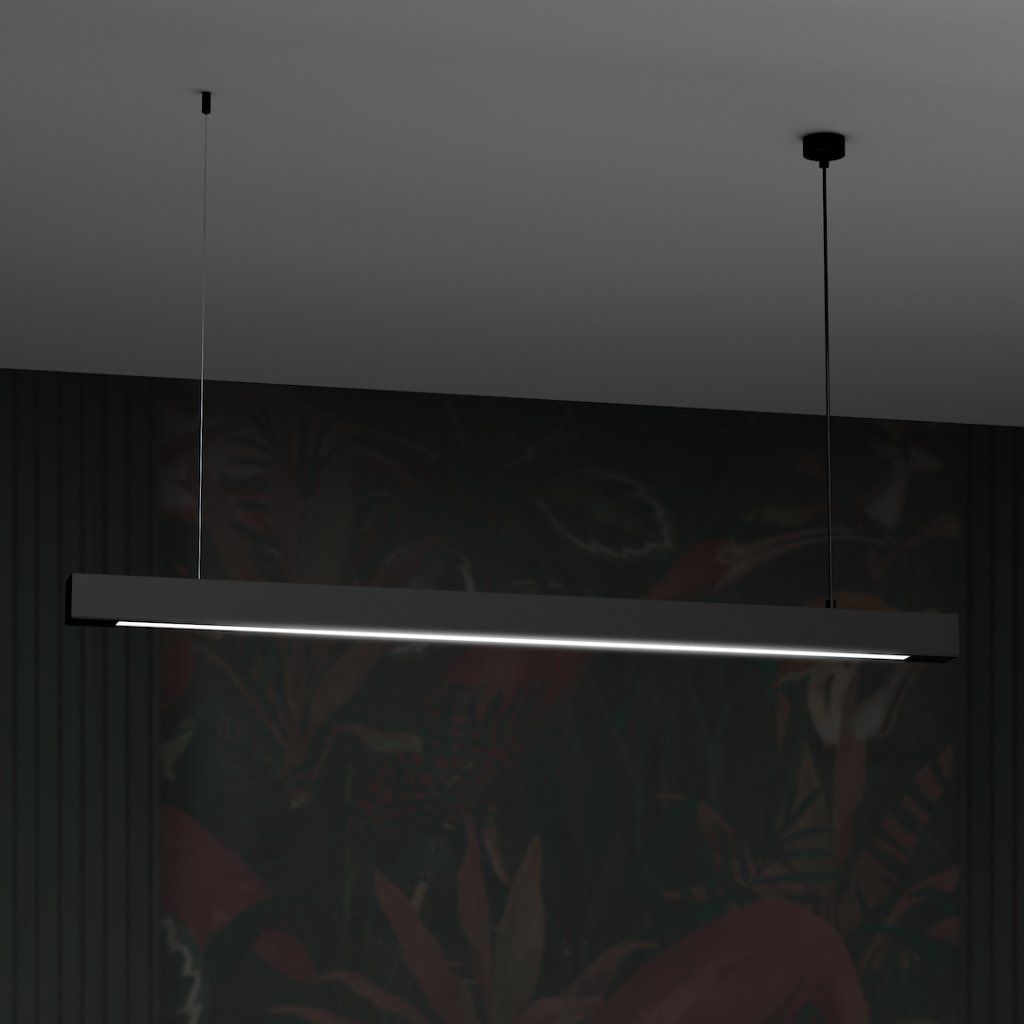 Minimalistické černé závěsné svítidlo Lungo o délce 124 cm je ideální volbou do domácí pracovny, kuchyně či jídelny . Vyniká čistými liniemi, jednoduchou formou a univerzálním barevným provedením, které perfektně zapadne do moderních i industriálních interiérů . Jeho úzká silueta působí elegantně a zároveň vizuálně nezatěžuje prostor.