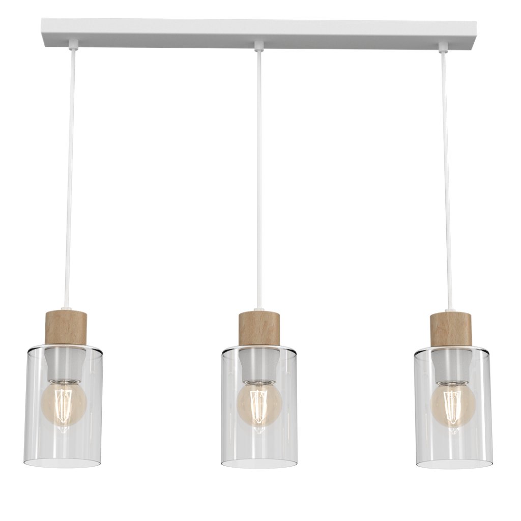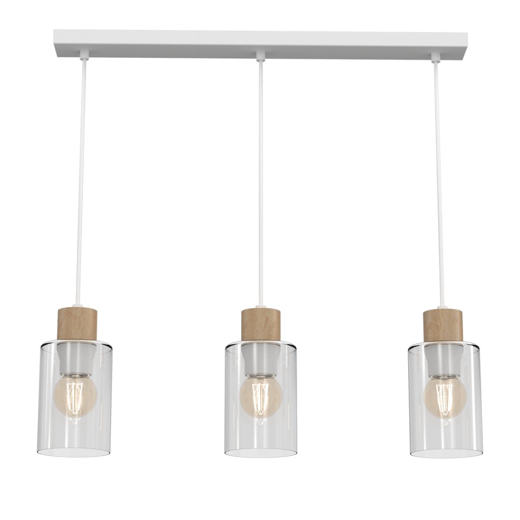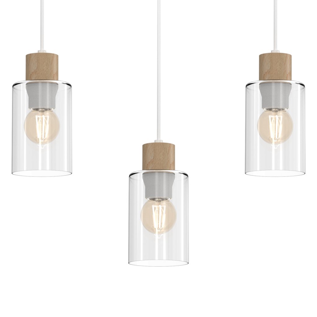 Závesné svietidlo Madera, 3x transparentné sklenené tienidlo, w/drevo