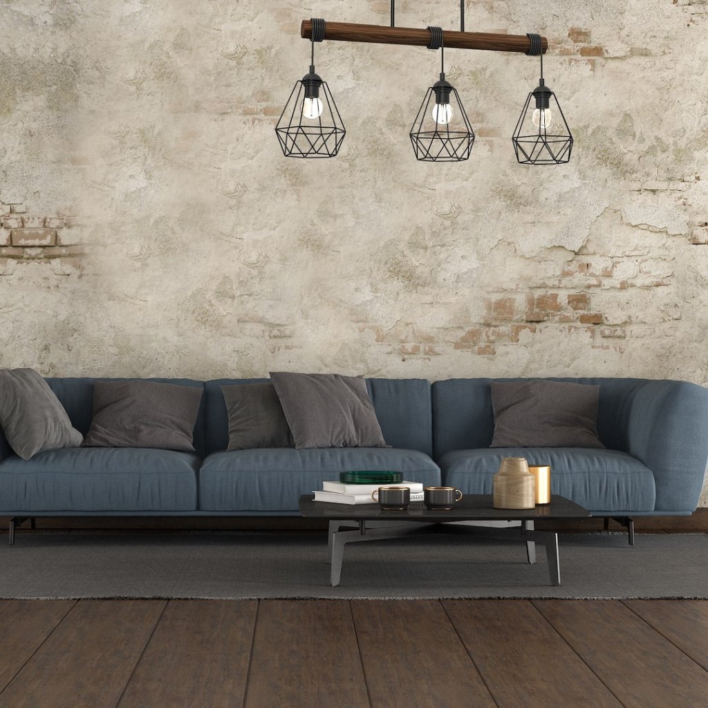 Moderní závěsné svítidlo z kolekce Acero spojuje černý kov a přírodní dřevo v harmonickém kontrastu, který působí čistě, surově a zároveň elegantně . Tři drátěná stínítka vytvářejí vizuálně lehkou kompozici, která krásně vynikne ve skandinávském, industriálním nebo minimalistickém interiéru .