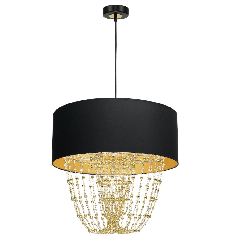 Závěsné svítidlo Almeria, 1x krystalky/černé textilní stínítko, b/g