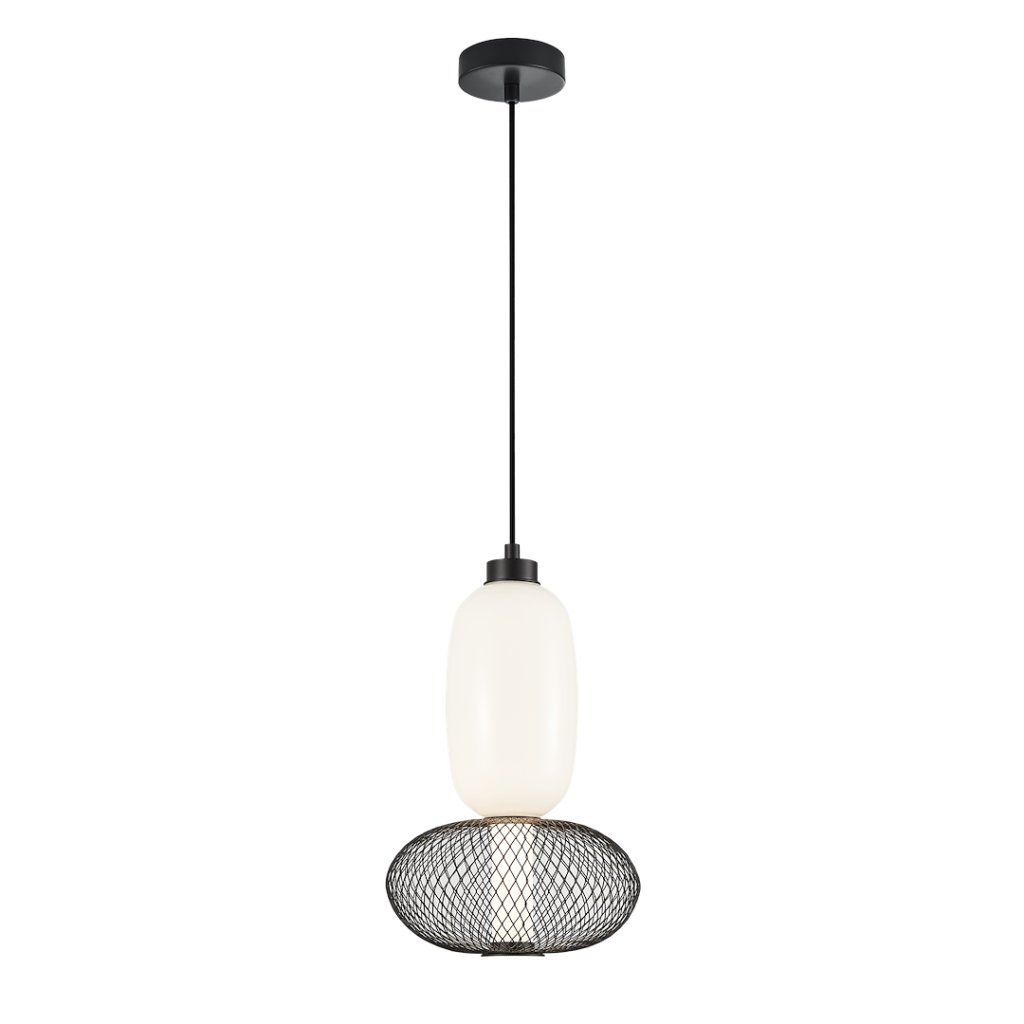 Závěsné svítidlo Arame, 1x bílé skleněné/černé drátěné stínítko, b
