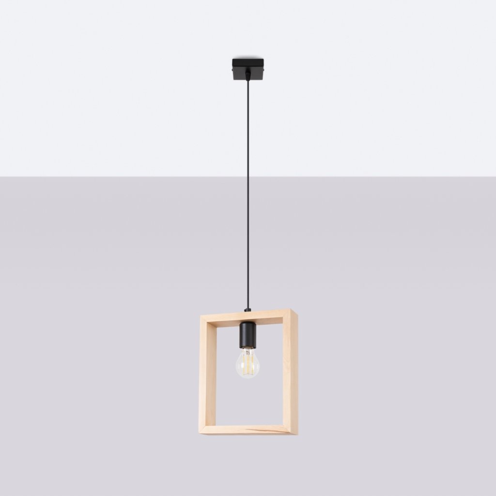 Tato stylová závěsná lampa kombinuje jednoduchost a modernost a má čtvercový dřevěný rám s jednou žárovkou zavěšenou uprostřed. Skvěle se hodí do interiérů ve skandinávském stylu nebo jako akcent do eklektičtějších prostor. Jednoduchost designu umožňuje lampu použít v různých místnostech v domácnosti.Svítidlo je vhodné pro všechny typy domácností.