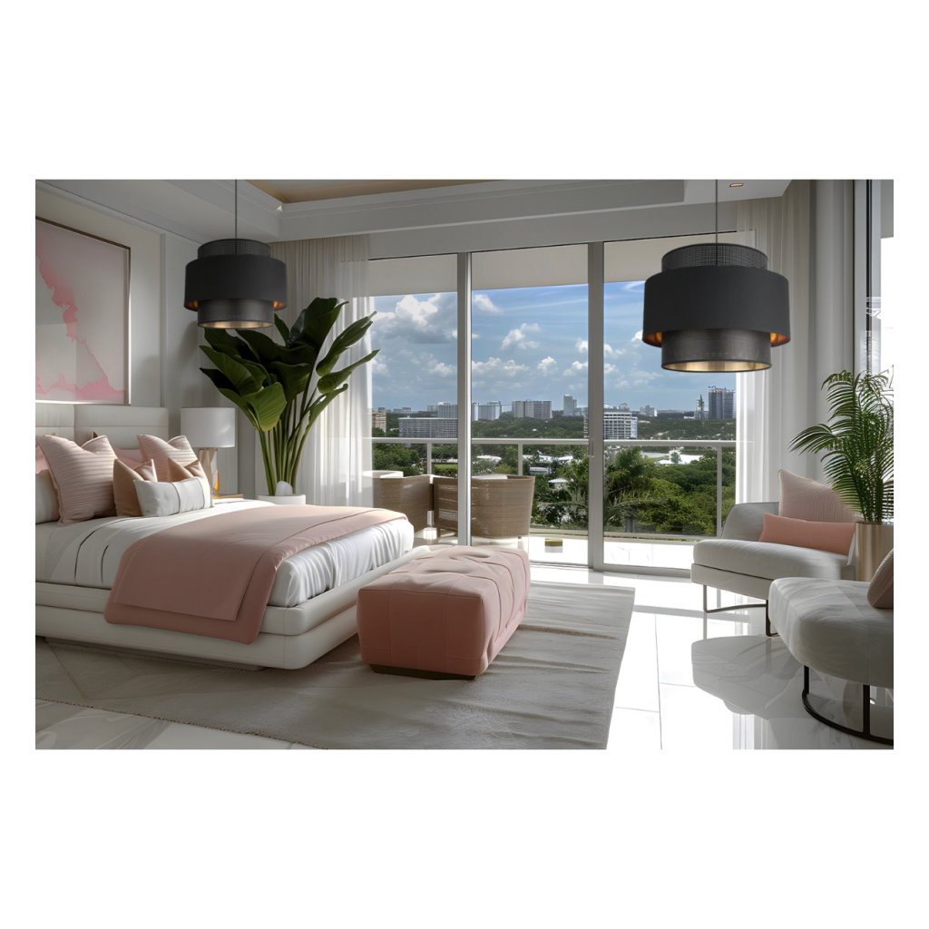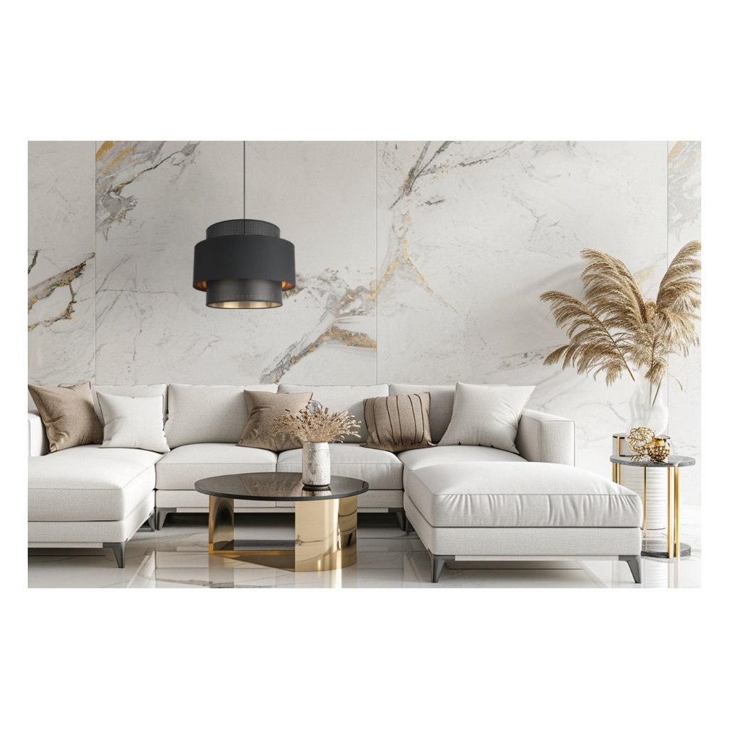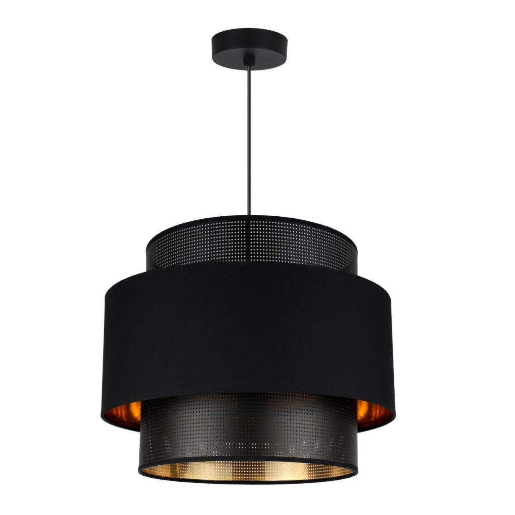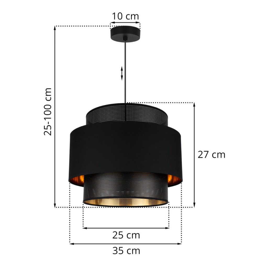 Závěsné svítidlo Asti, 1x PVC/černé textilní stínítko, (fi 35cm), g/c