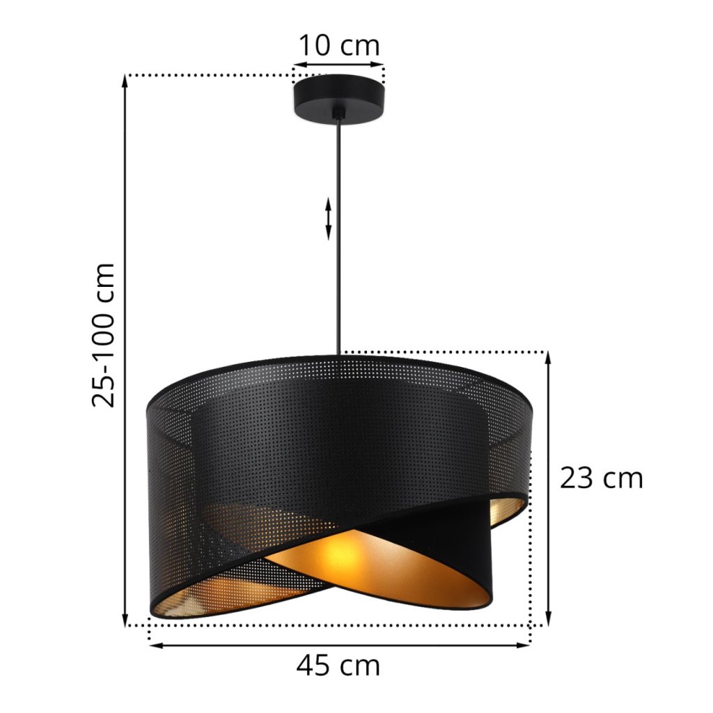 Závěsné svítidlo Asti Duo1, 1x PVC/černé textilní stínítko, (fi 45cm), g, b