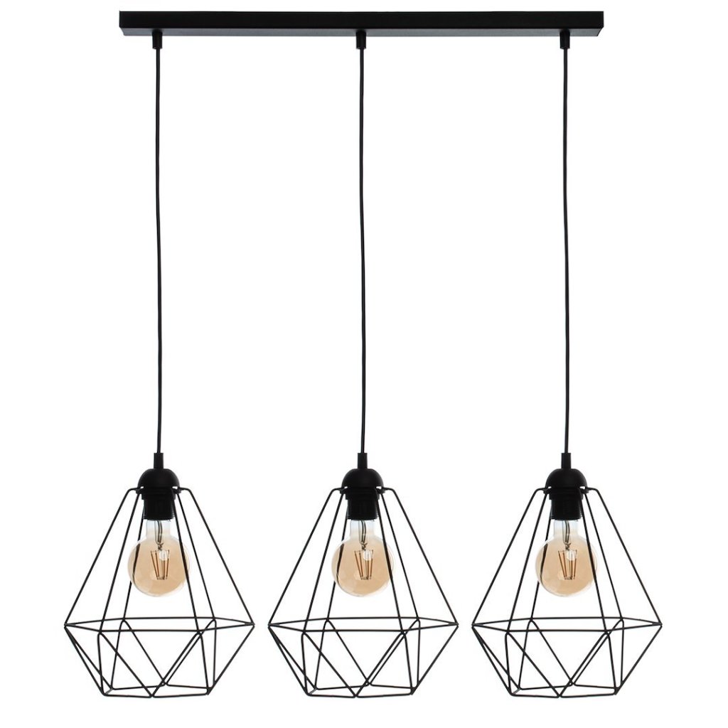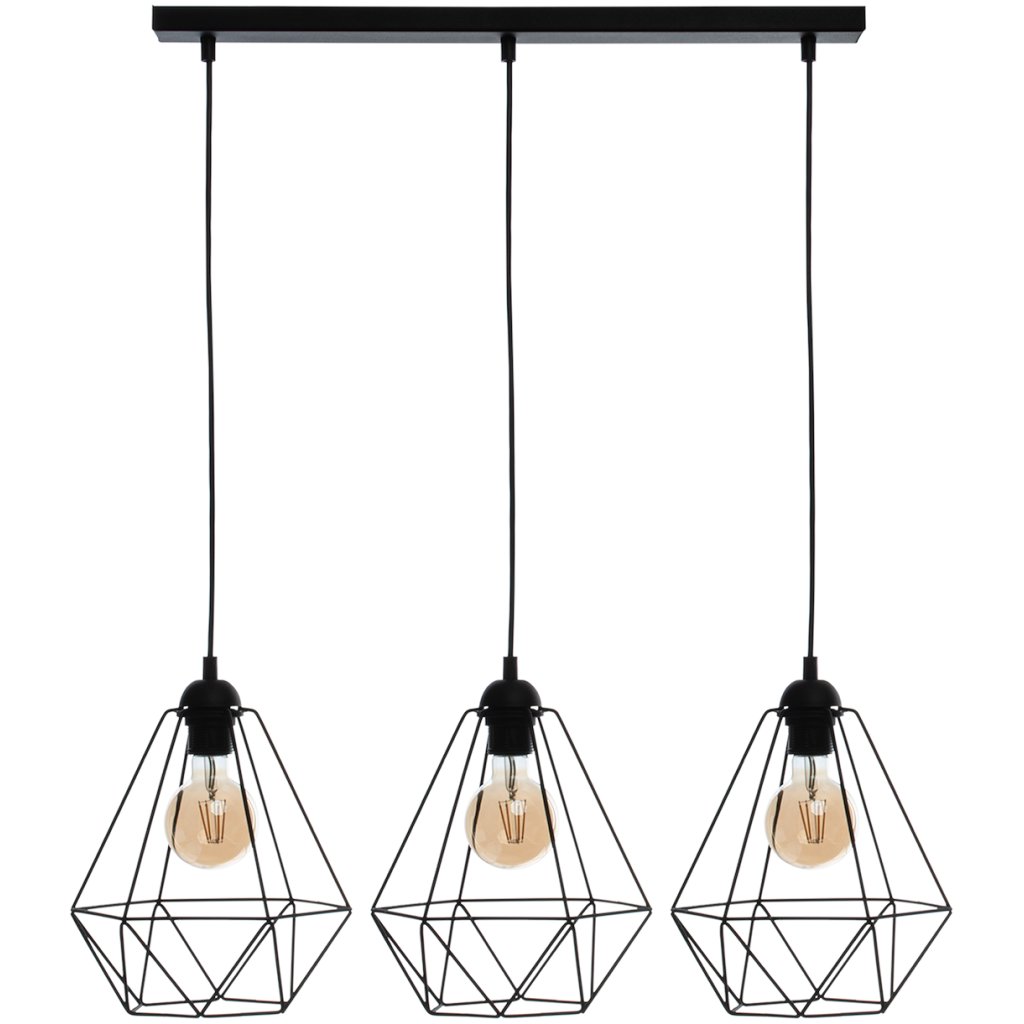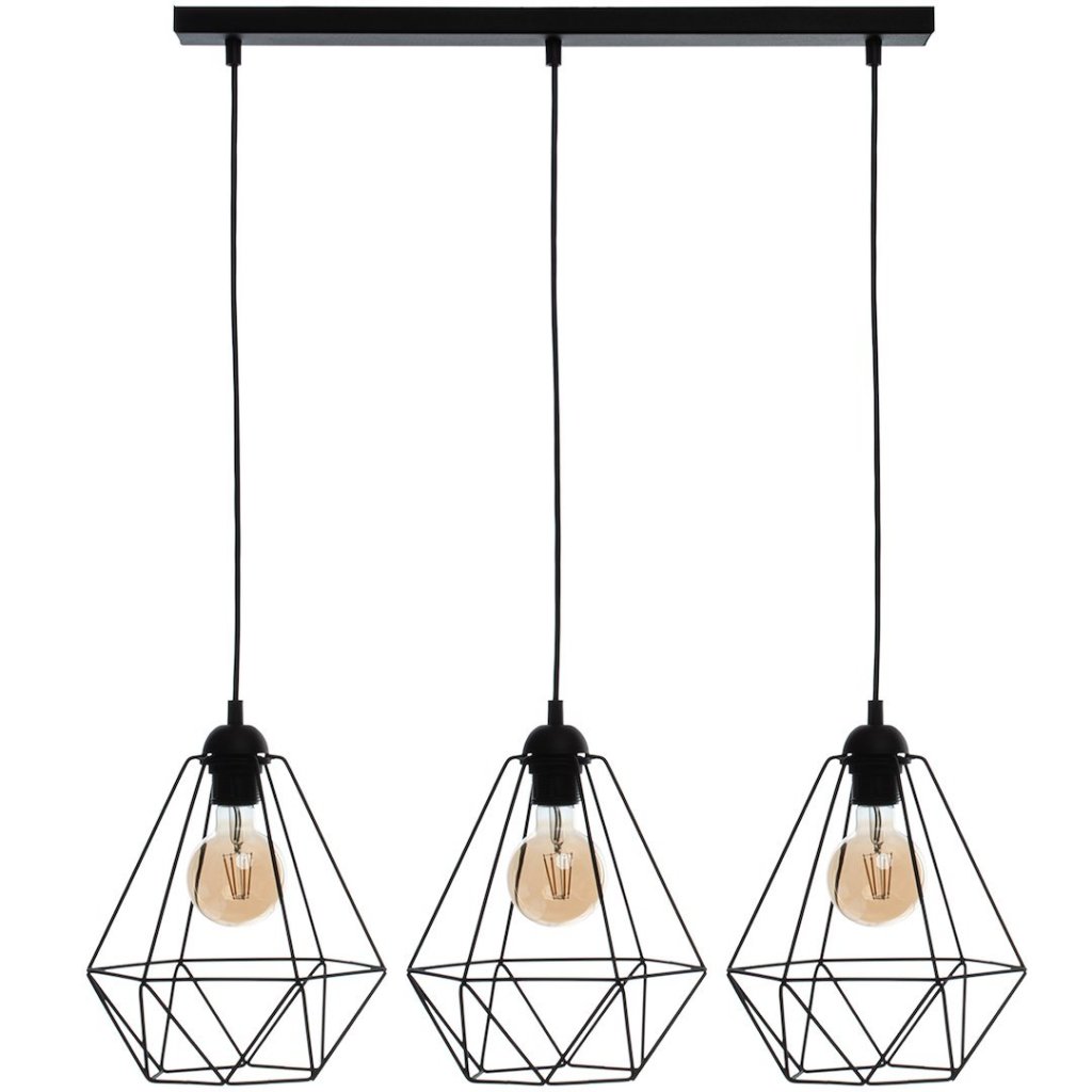 Stínítka ve tvaru diamantu jsou vyrobena z kovového drátu, který vytváří jemný, ale nápaditý světelný efekt . Černá barva dodává svítidlu charakter a elegantní kontrast, který výborně ladí s dřevěnými, kovovými či betonovými prvky v interiéru.