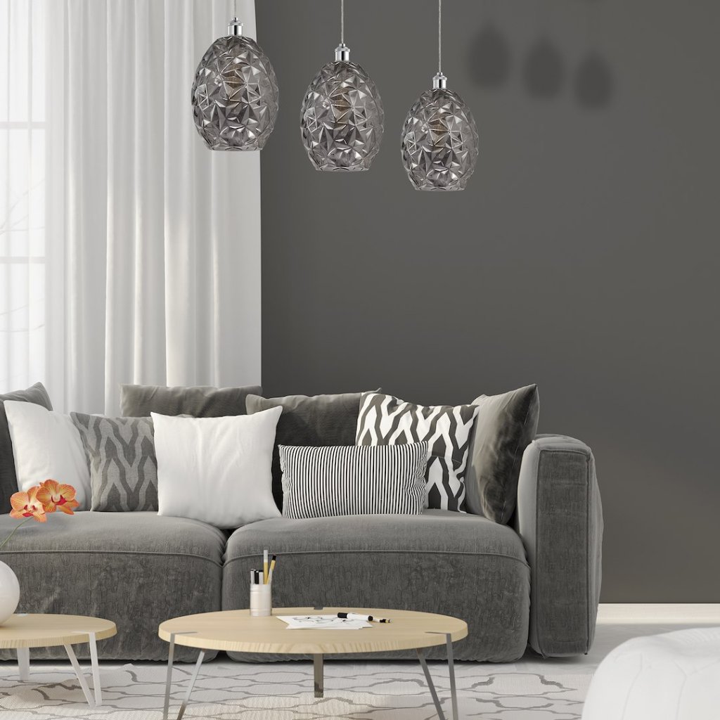 Závěsné svítidlo BELIZE se skleněnými grafitovými stínítky je designovou novinkou, určenou pro milovníky stylového a funkčního osvětlení interiérů . Model je vybaven třemi světelnými body, do kterých lze osadit LED žárovky , které vynikají dlouhou životností a energetickou úsporností.