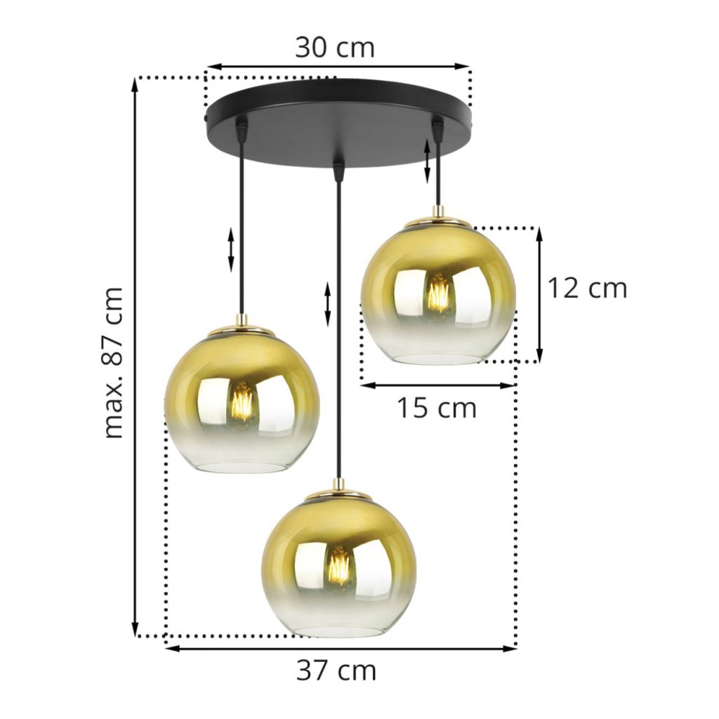 Závěsné svítidlo Bergen Gold, 3x zlaté/transparentní skleněné stínítko (fi 15cm), o