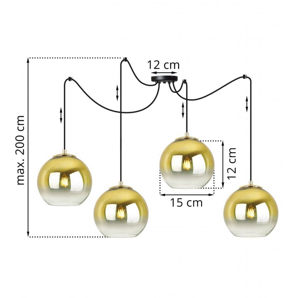 Závěsné svítidlo Bergen Gold Spider, 4x zlaté/transparentní skleněné stínítko (fi 15cm)