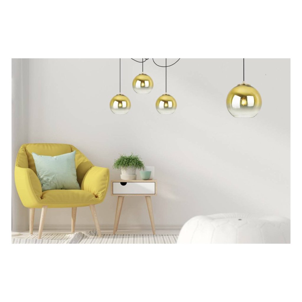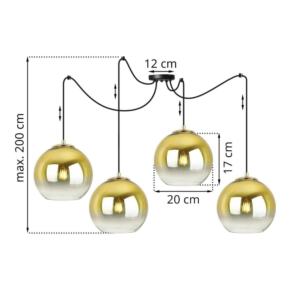 Závěsné svítidlo Bergen Gold Spider, 4x zlaté/transparentní skleněné stínítko (fi 20cm)