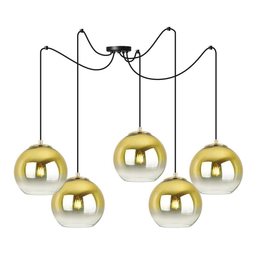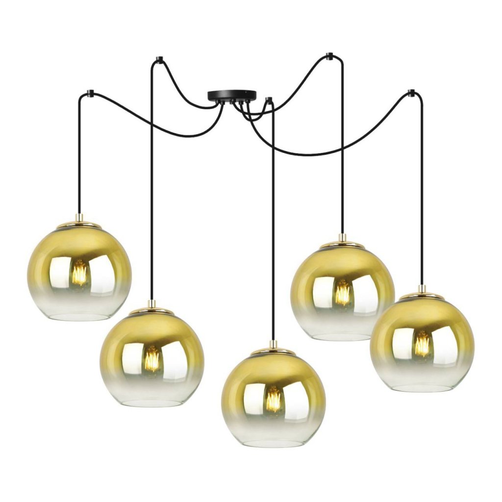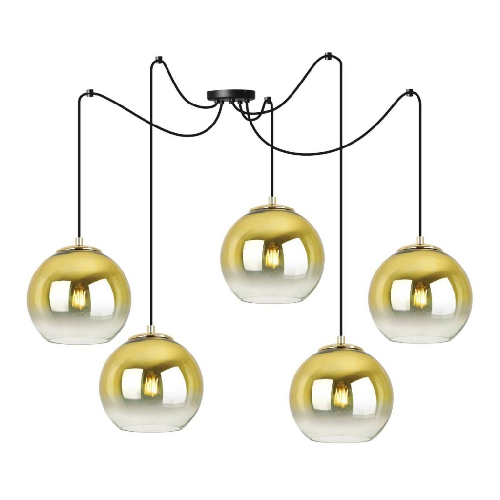 Závěsné svítidlo Bergen Gold Spider, 5x zlaté/transparentní skleněné stínítko (fi 15cm)