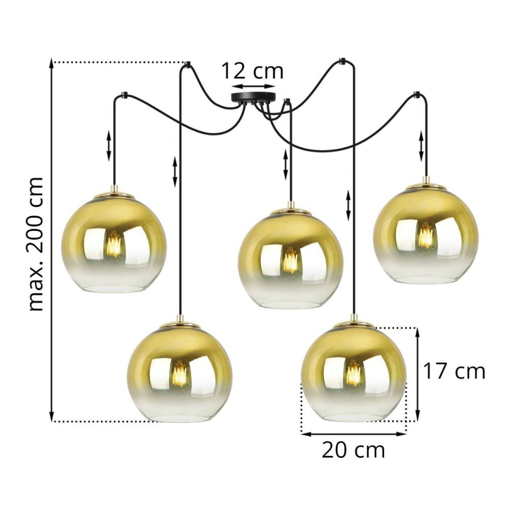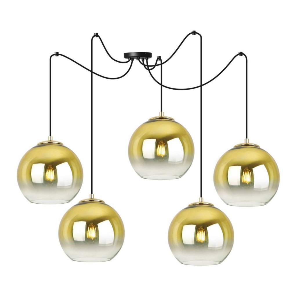 Závěsné svítidlo Bergen Gold Spider, 5x zlaté/transparentní skleněné stínítko (fi 20cm)
