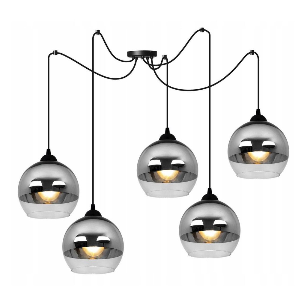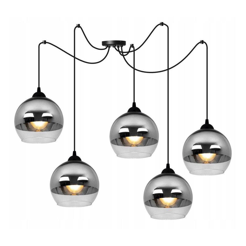 Závěsné svítidlo Bergen Spider, 5x chromové/transparentní skleněné stínítko (fi 15cm)