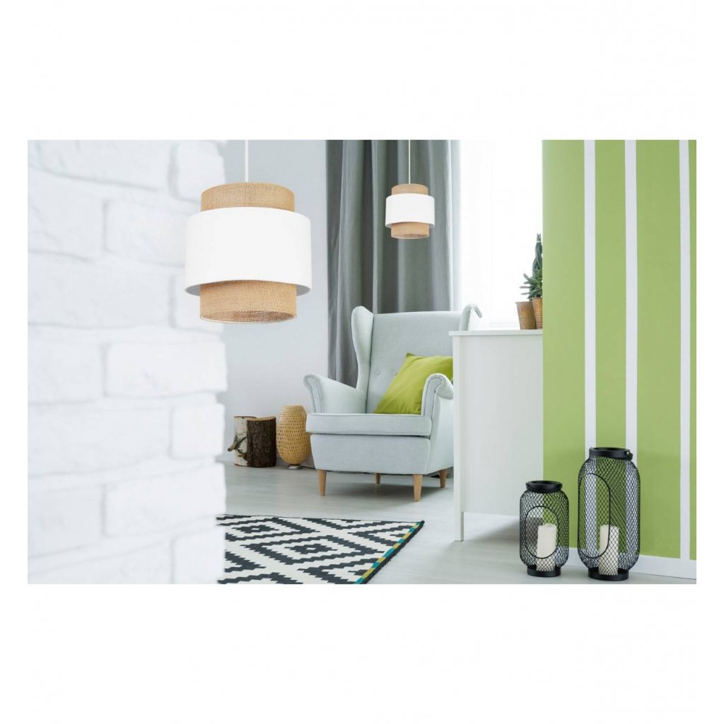 Závěsné svítidlo Boho, 1x jutové/bílé textilní stínítko
