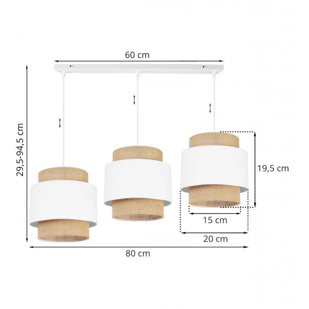 Závěsné svítidlo Boho, 3x jutové/bílé textilní stínítko