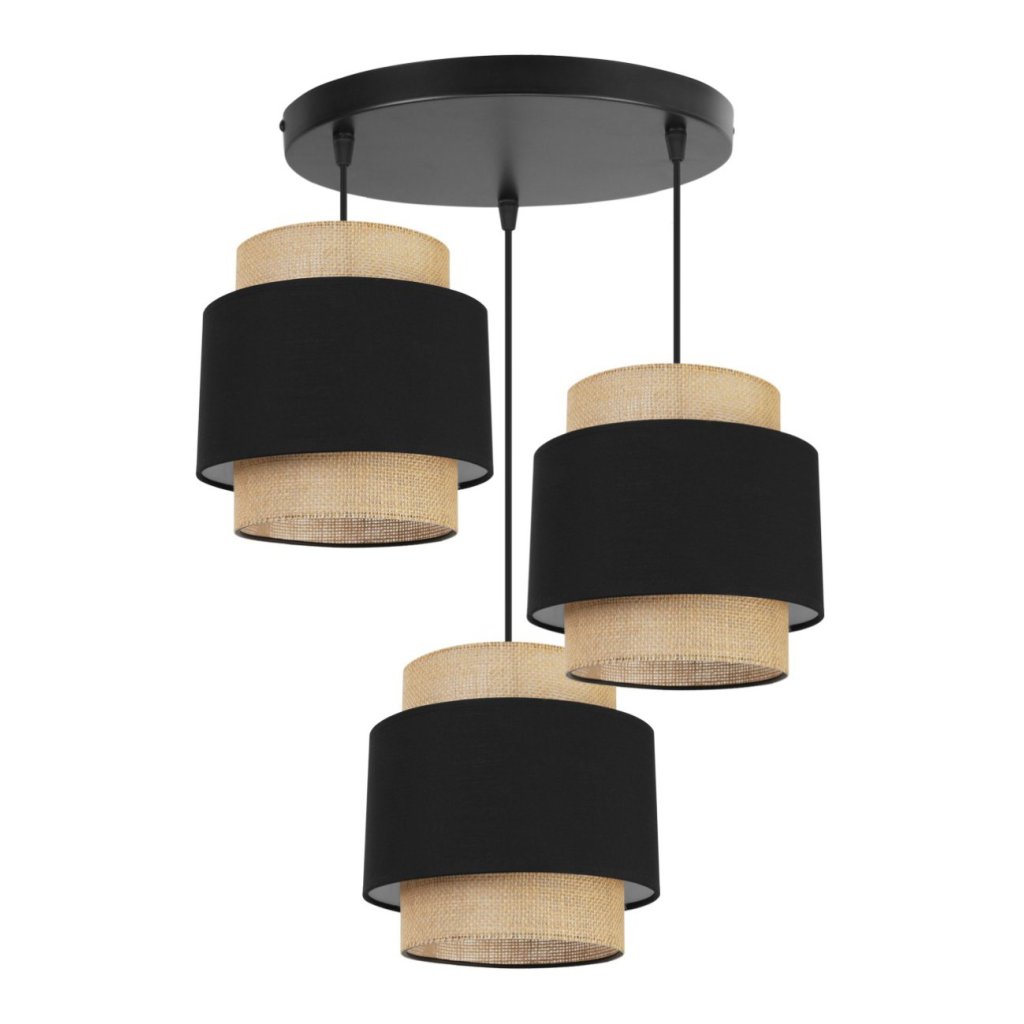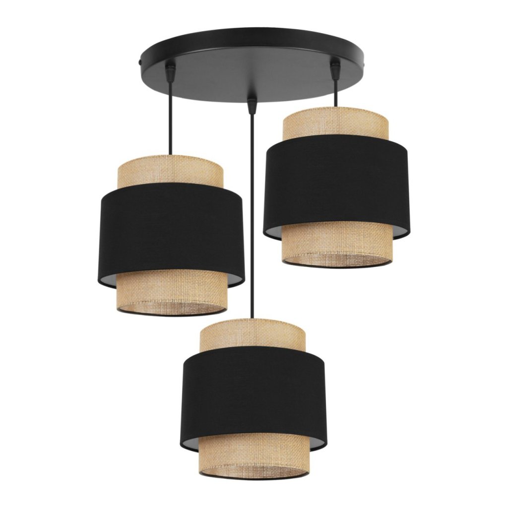 Závěsné svítidlo Boho, 3x jutové/černé textilní stínítko, o