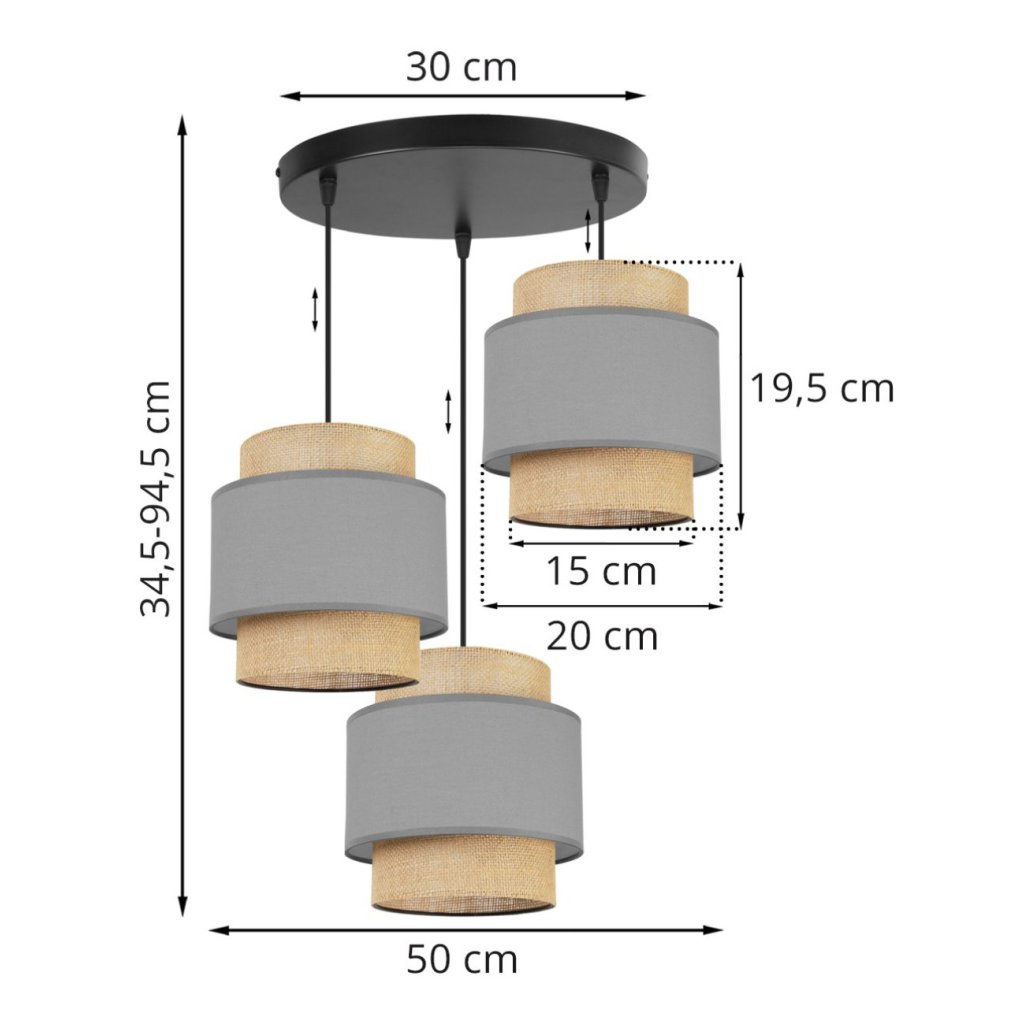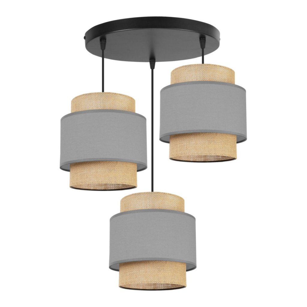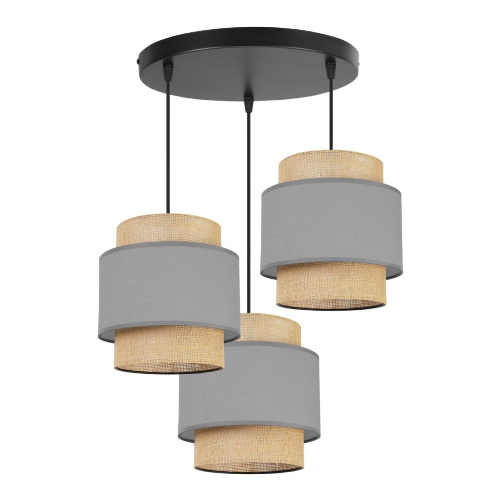 Závěsné svítidlo Boho, 3x jutové/šedé textilní stínítko, o