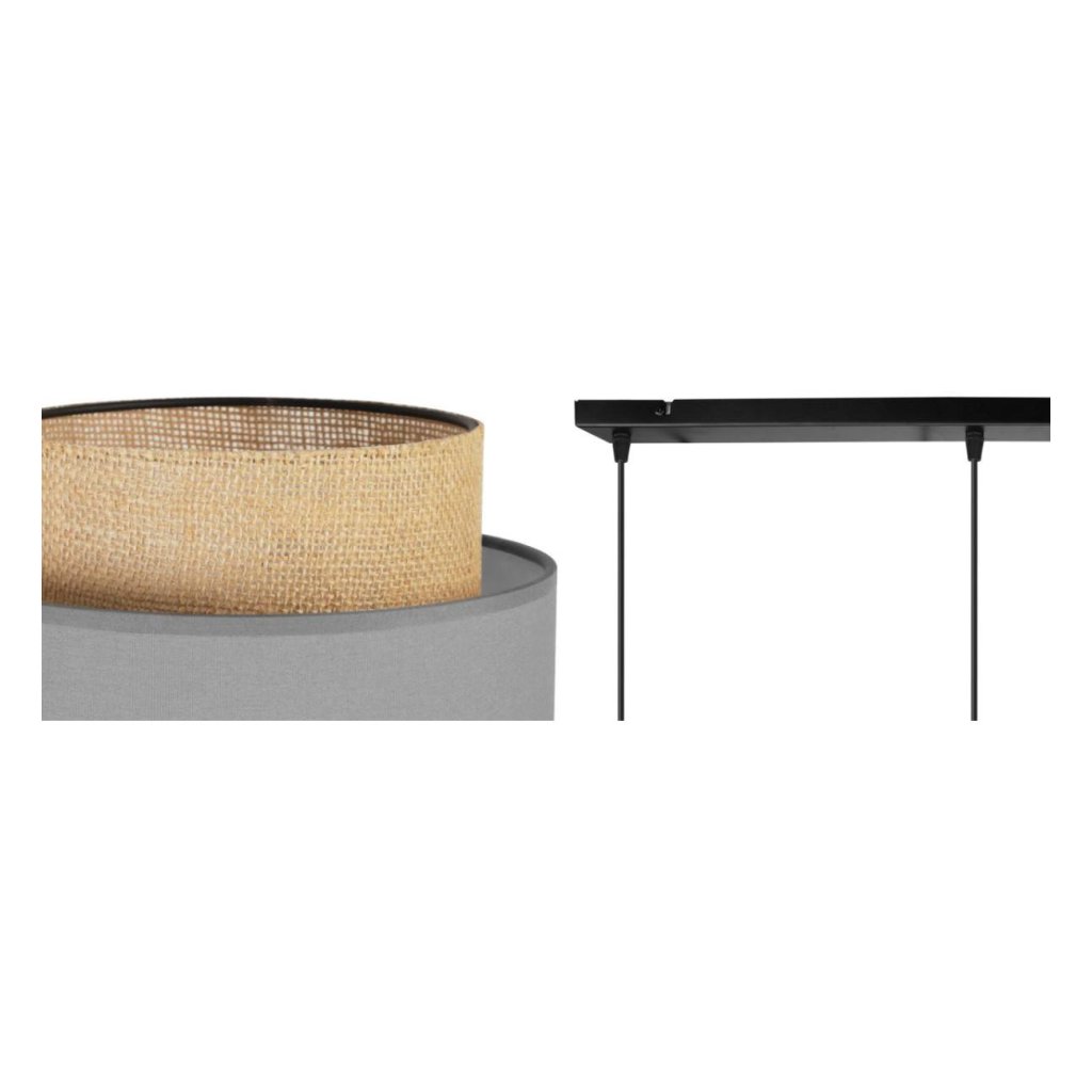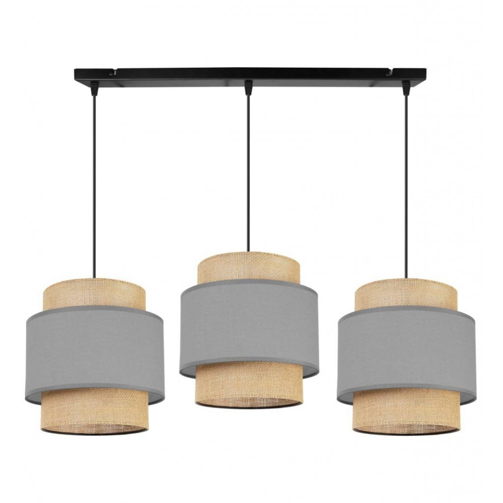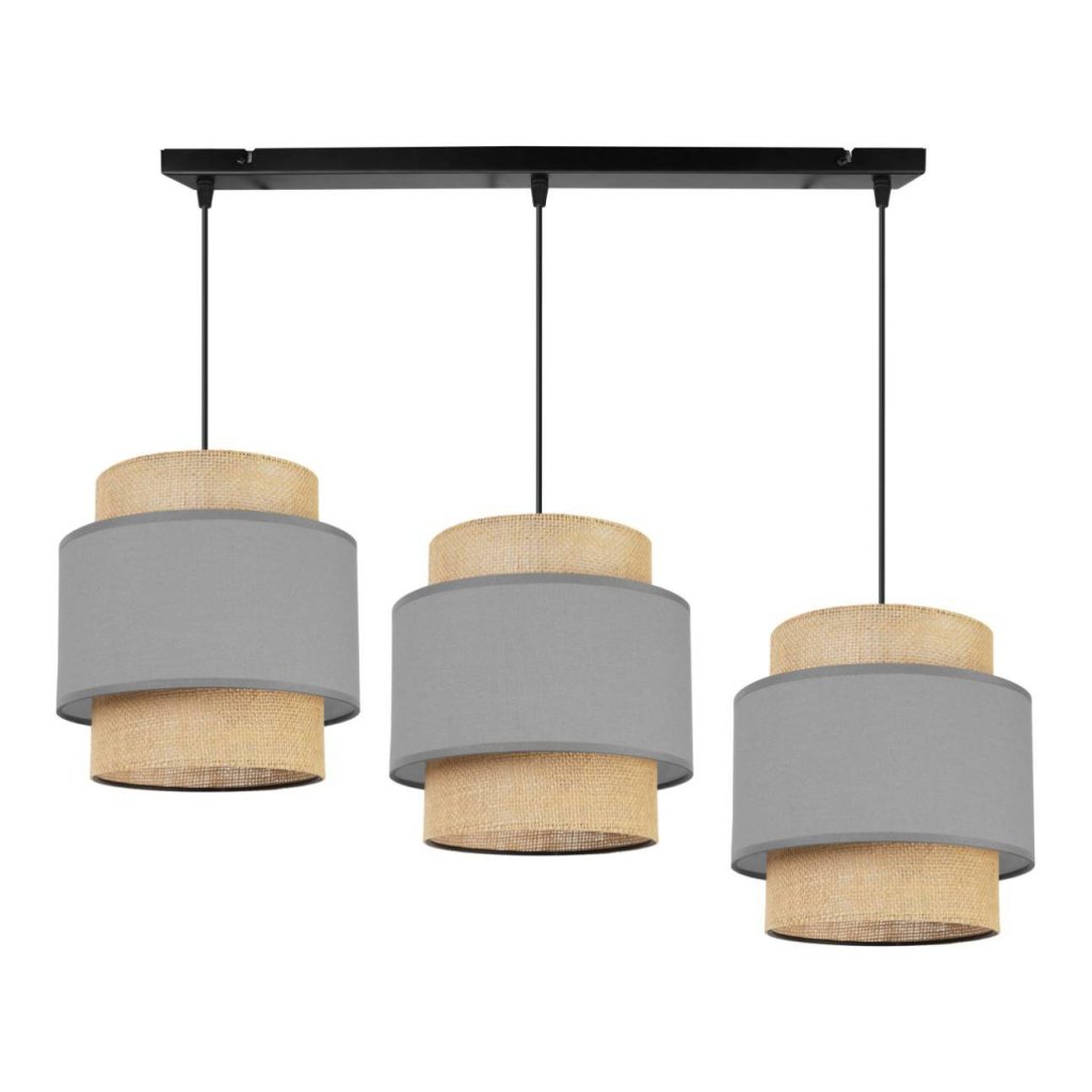 Závěsné svítidlo Boho, 3x jutové/šedé textilní stínítko