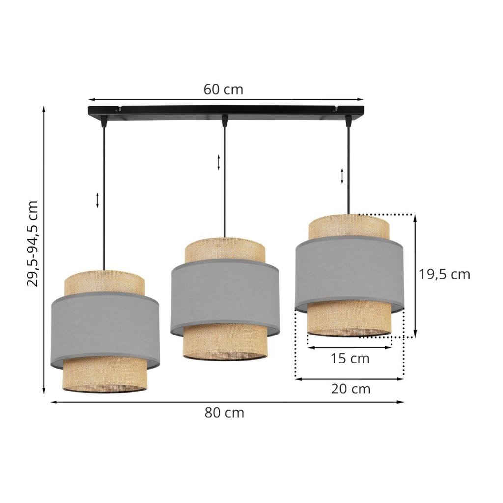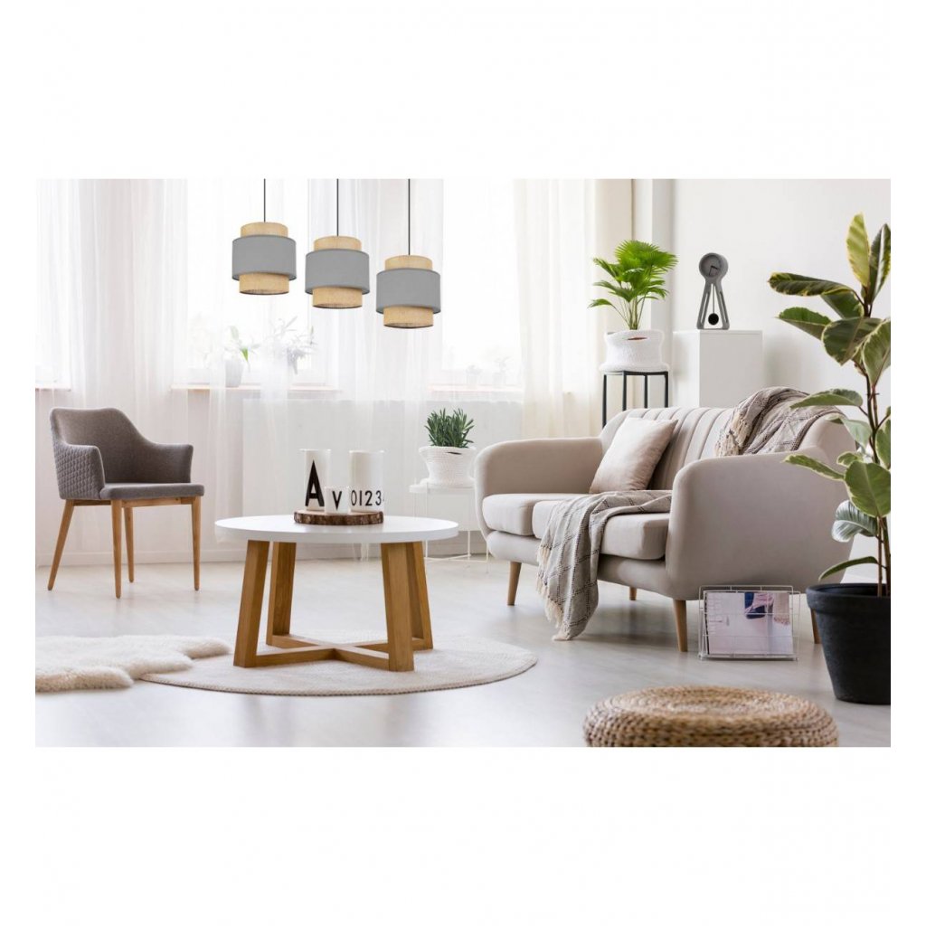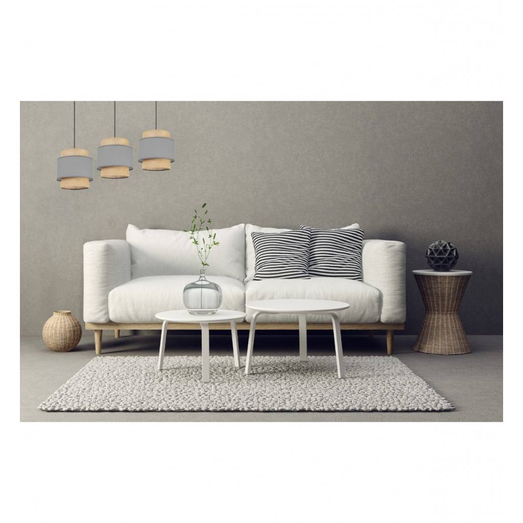 Závěsné svítidlo Boho, 3x jutové/šedé textilní stínítko