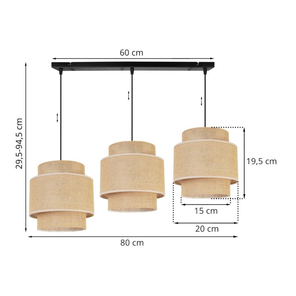Závěsné svítidlo Boho, 3x jutové stínítko, (výběr ze 2 barev konstrukce)