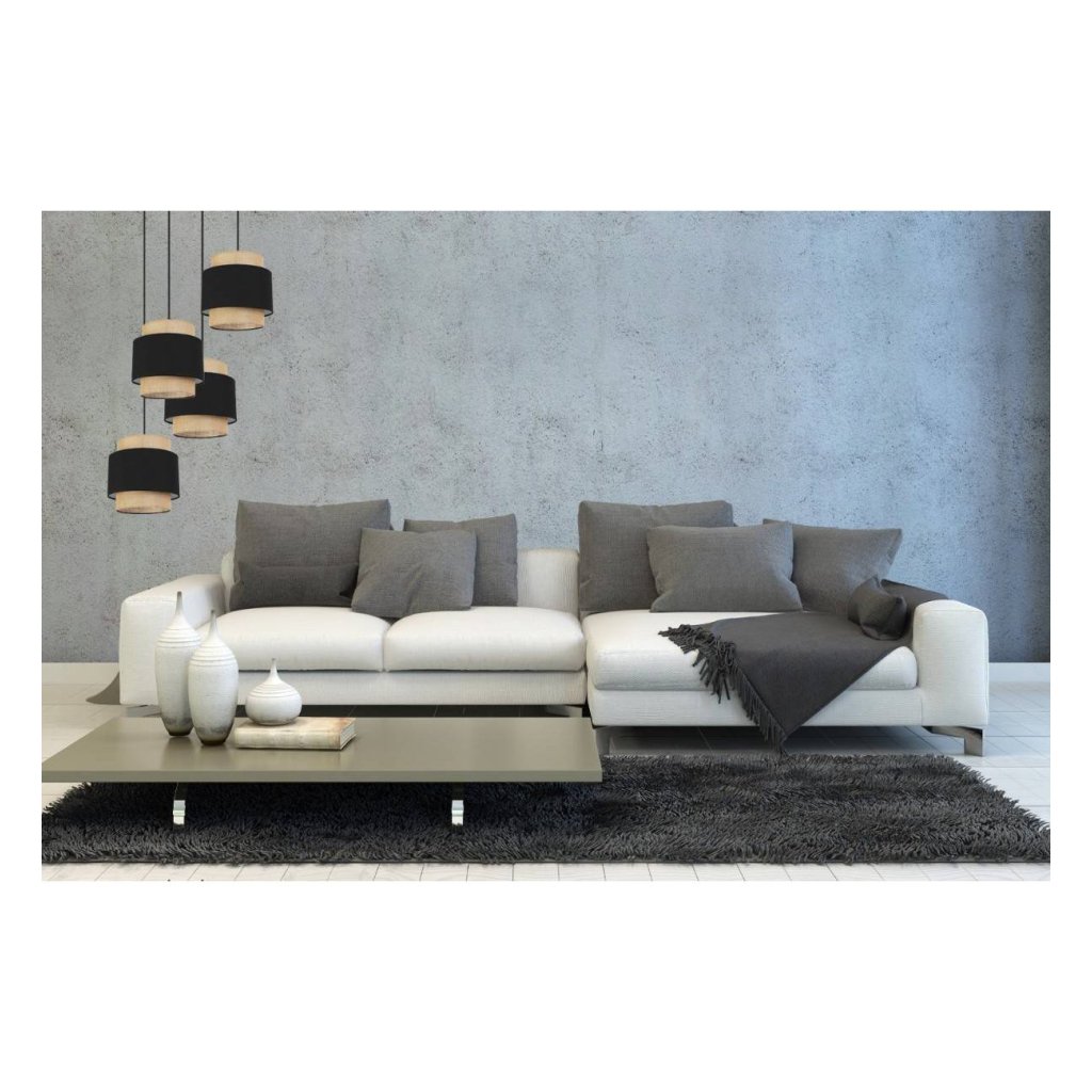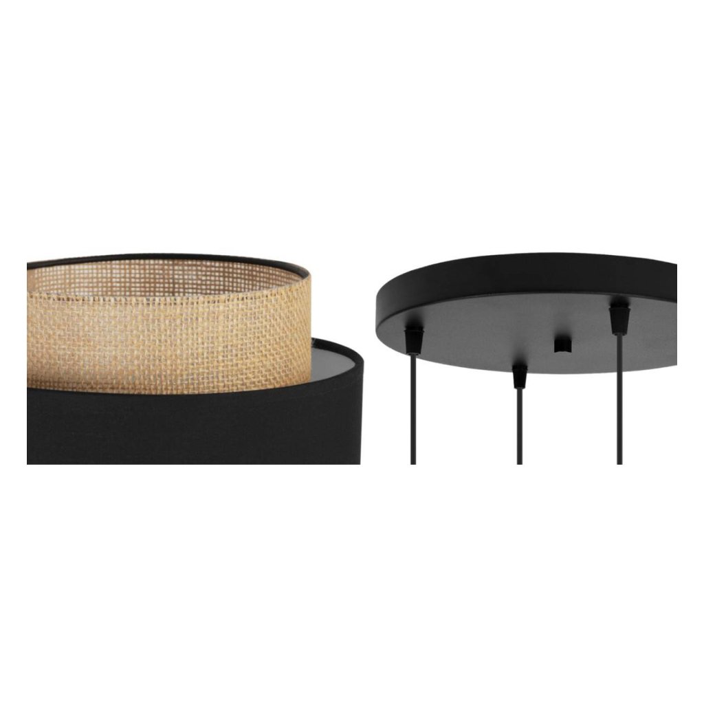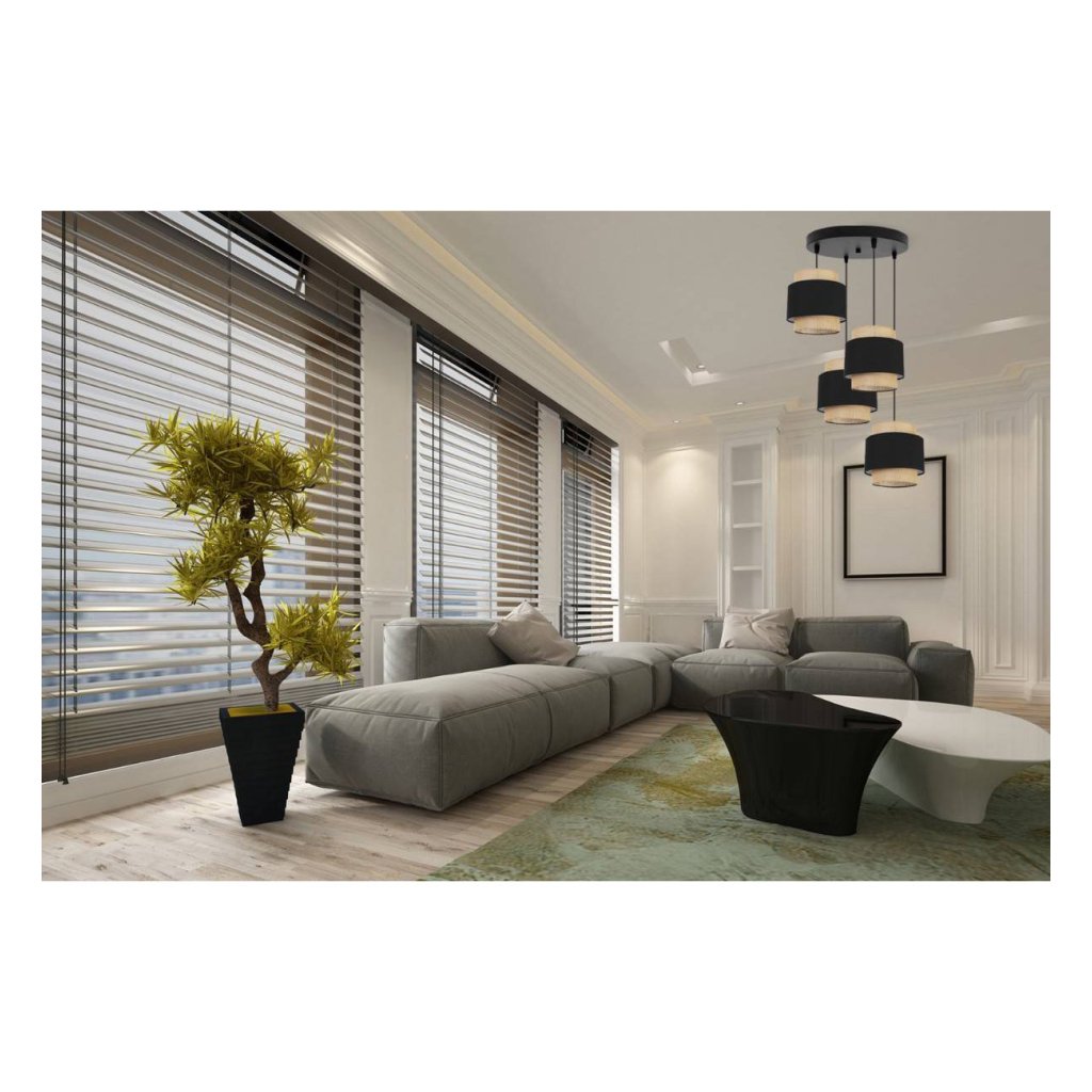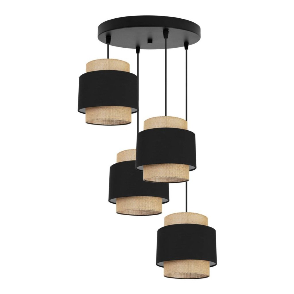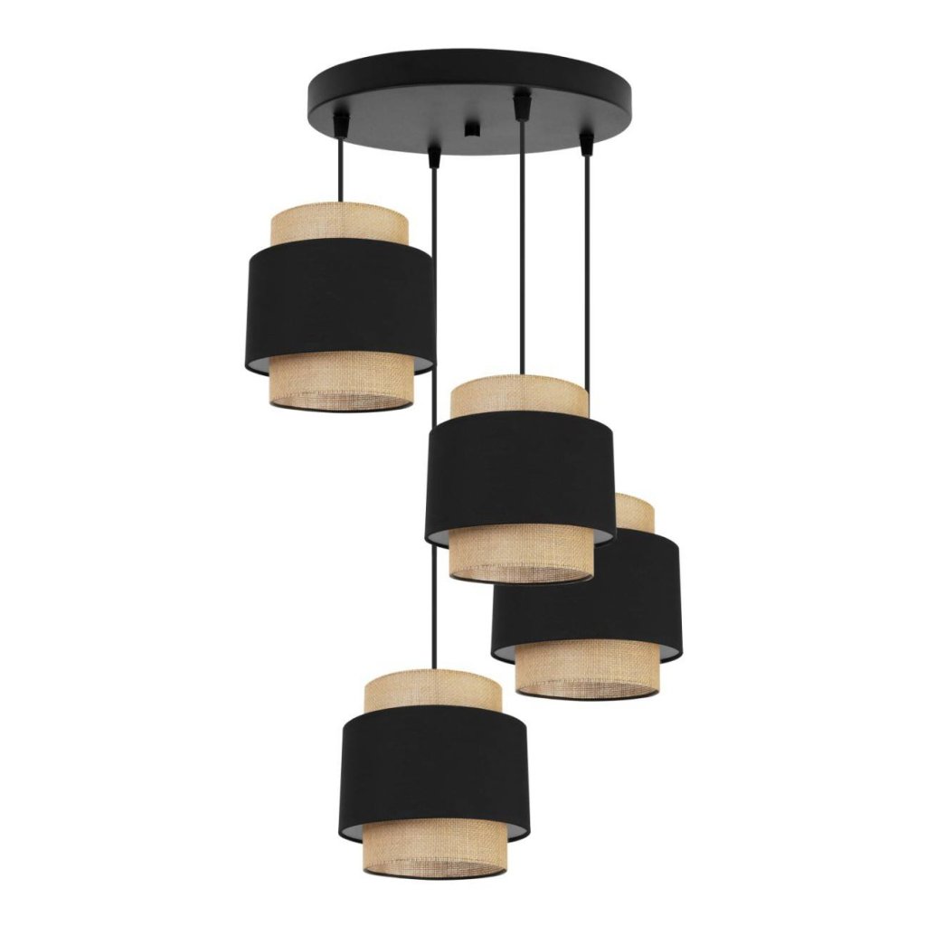 Závěsné svítidlo Boho, 4x jutové/černé textilní stínítko, o