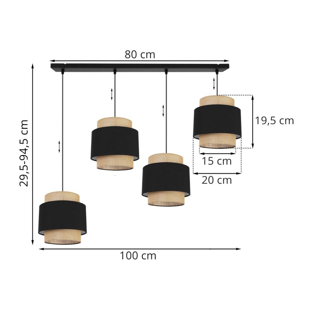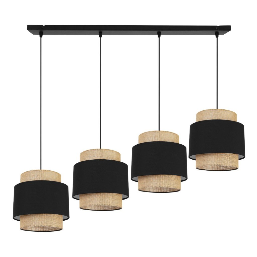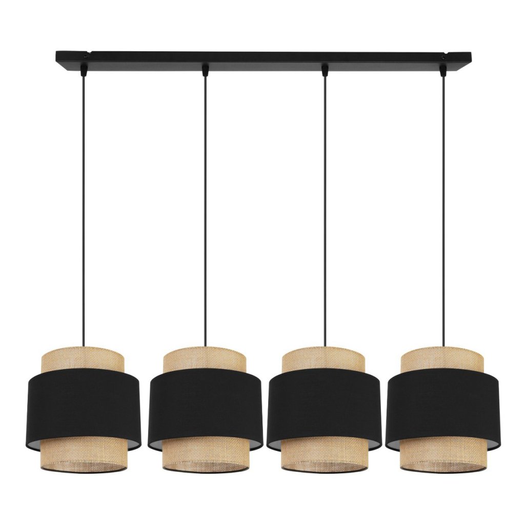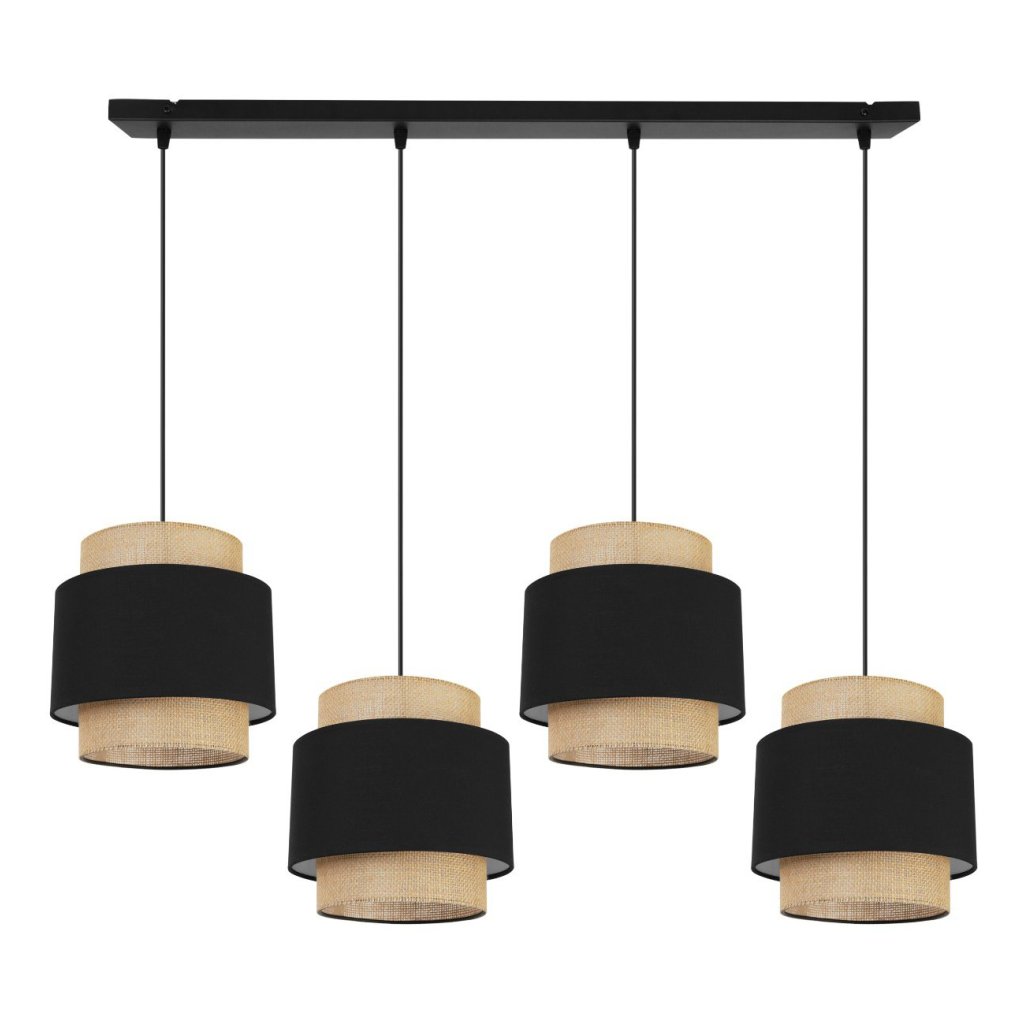 Závěsné svítidlo Boho, 4x jutové/černé textilní stínítko