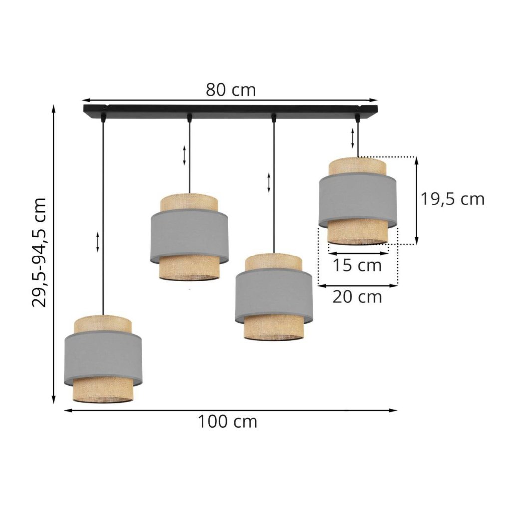 Závěsné svítidlo Boho, 4x jutové/šedé textilní stínítko