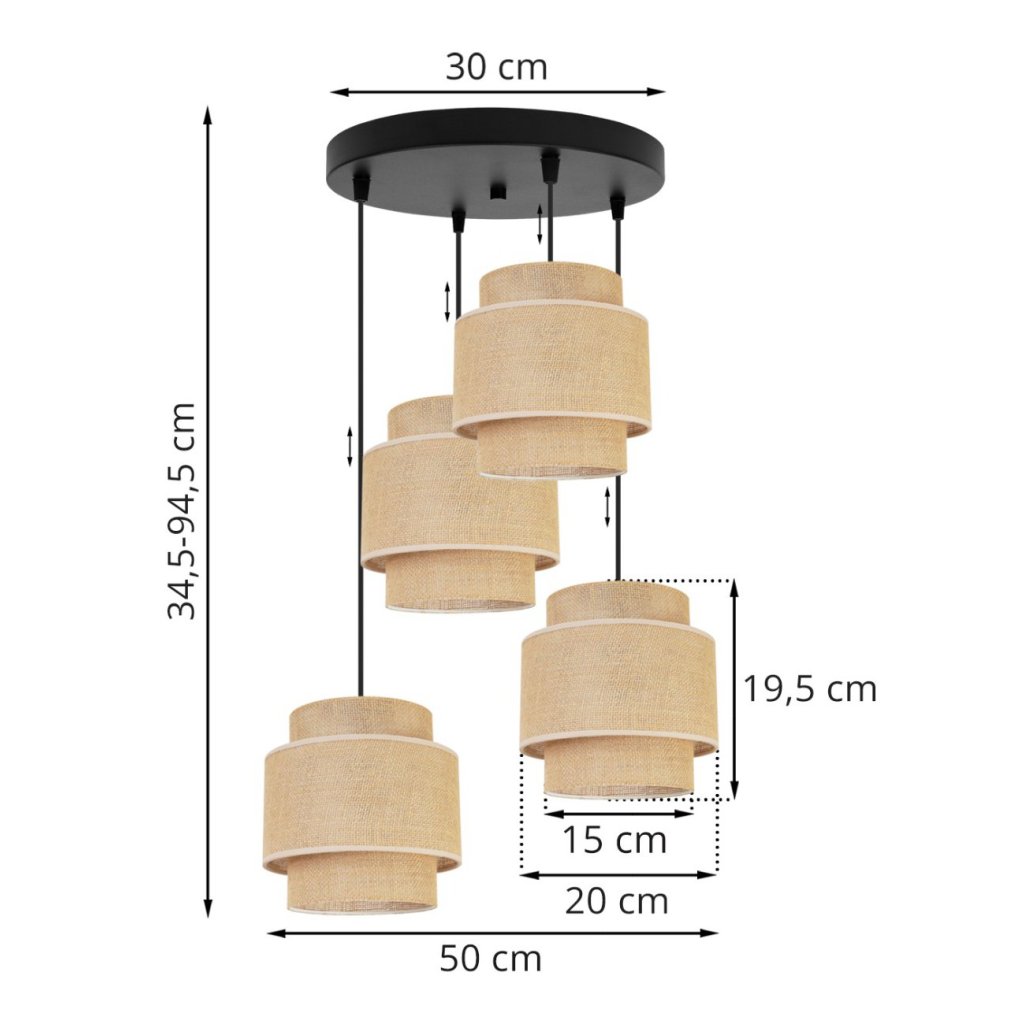 Závěsné svítidlo Boho, 4x jutové stínítko, (výběr ze 2 barev konstrukce), o