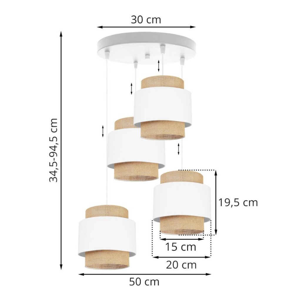 Závěsné svítidlo Boho 1, 4x jutové/bílé textilní stínítko, o