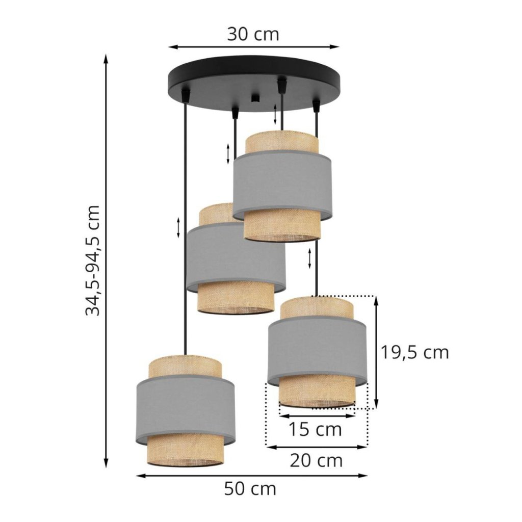 Závěsné svítidlo Boho 1, 4x jutové/šedé textilní stínítko, o