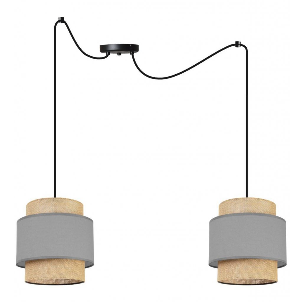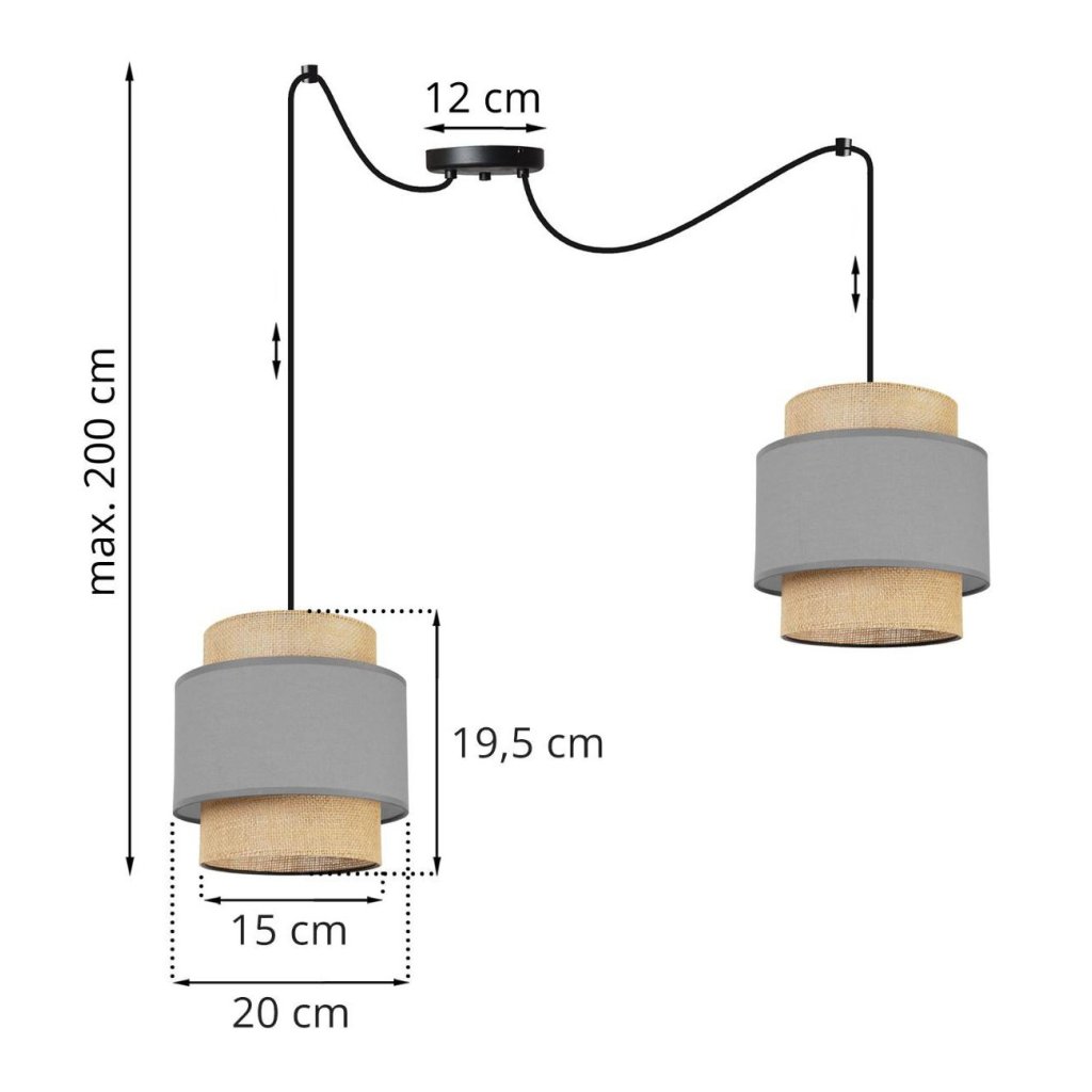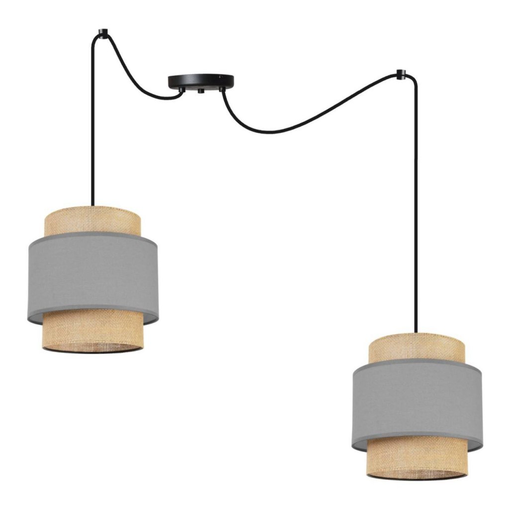 Závěsné svítidlo Boho Spider, 2x jutové/šedé textilní stínítko