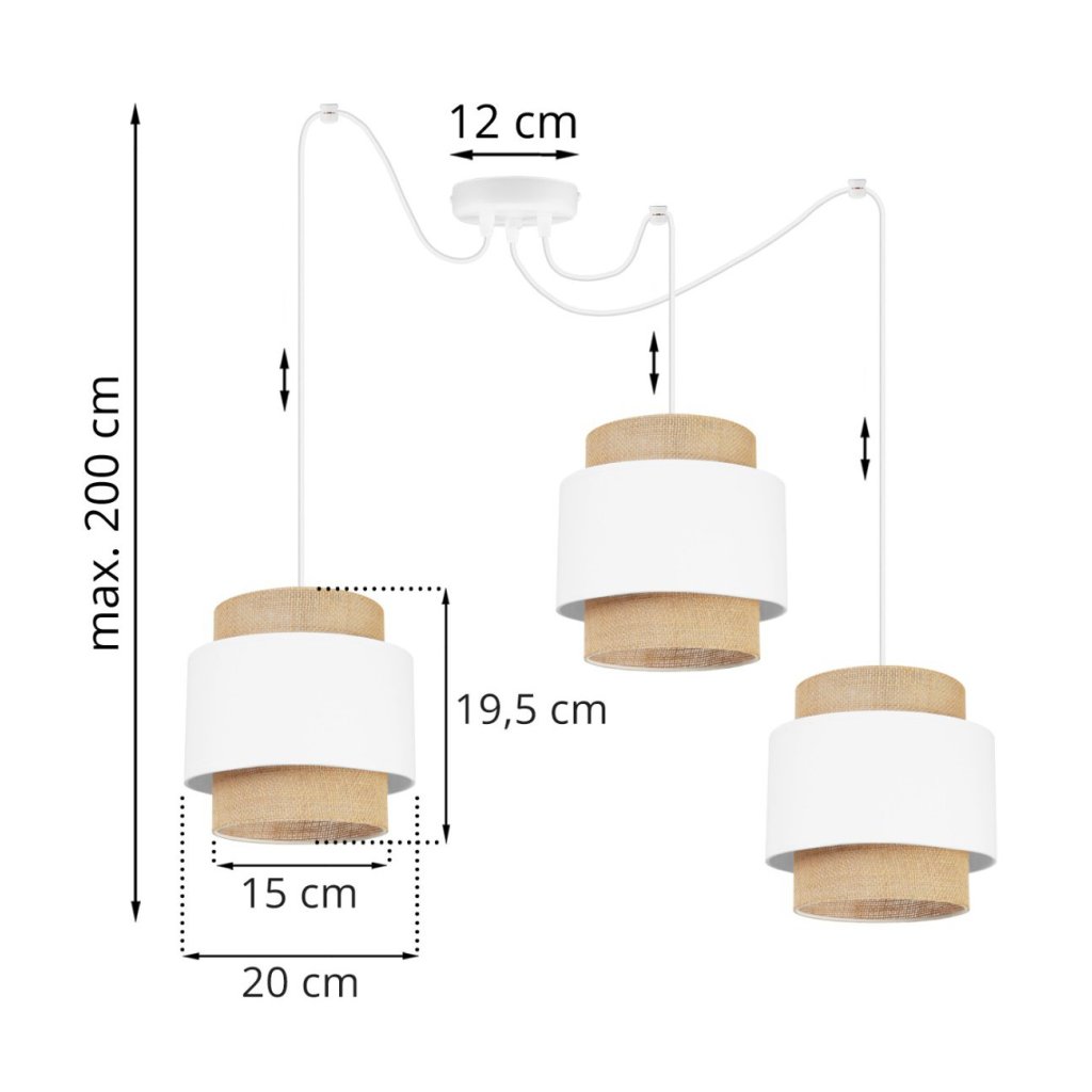 Závěsné svítidlo Boho Spider, 3x jutové/bílé textilní stínítko