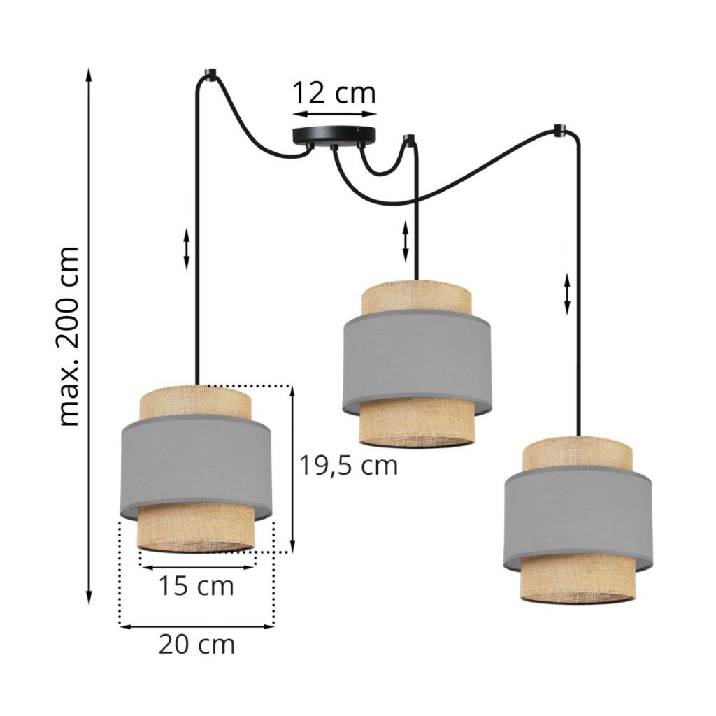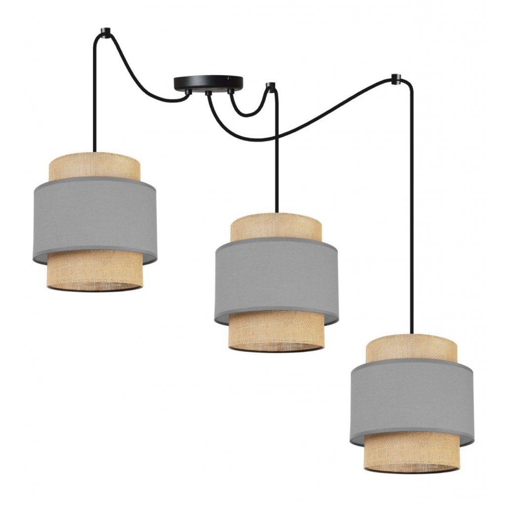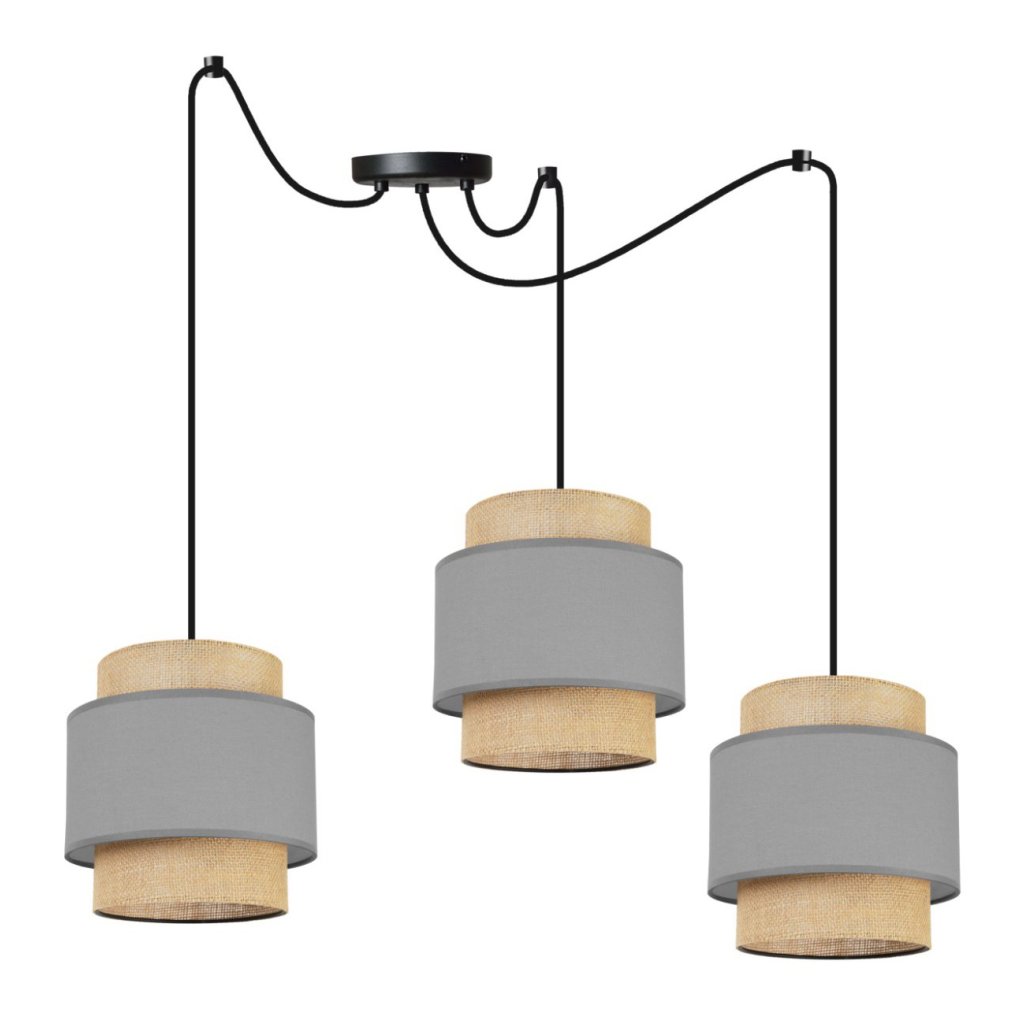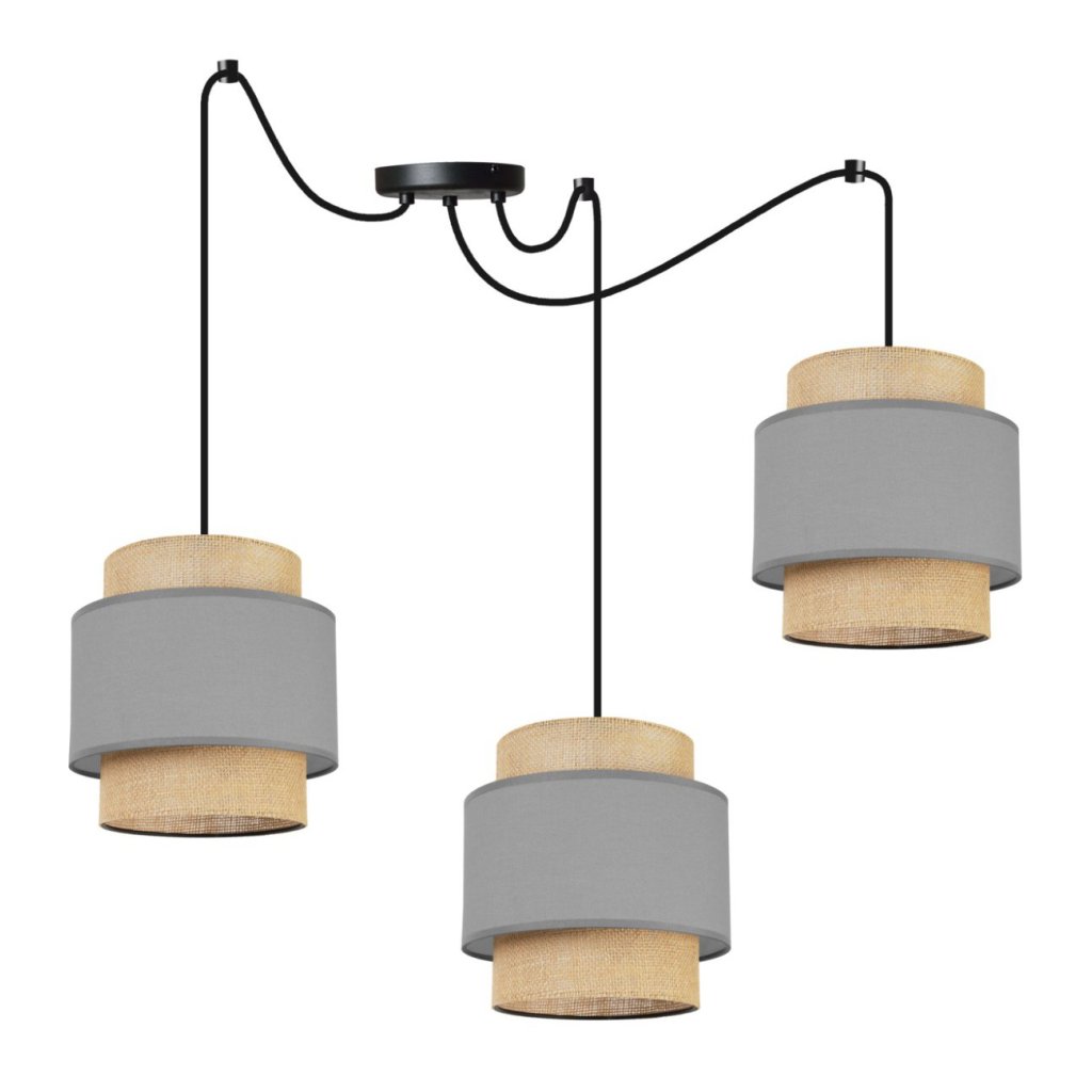 Závěsné svítidlo Boho Spider, 3x jutové/šedé textilní stínítko