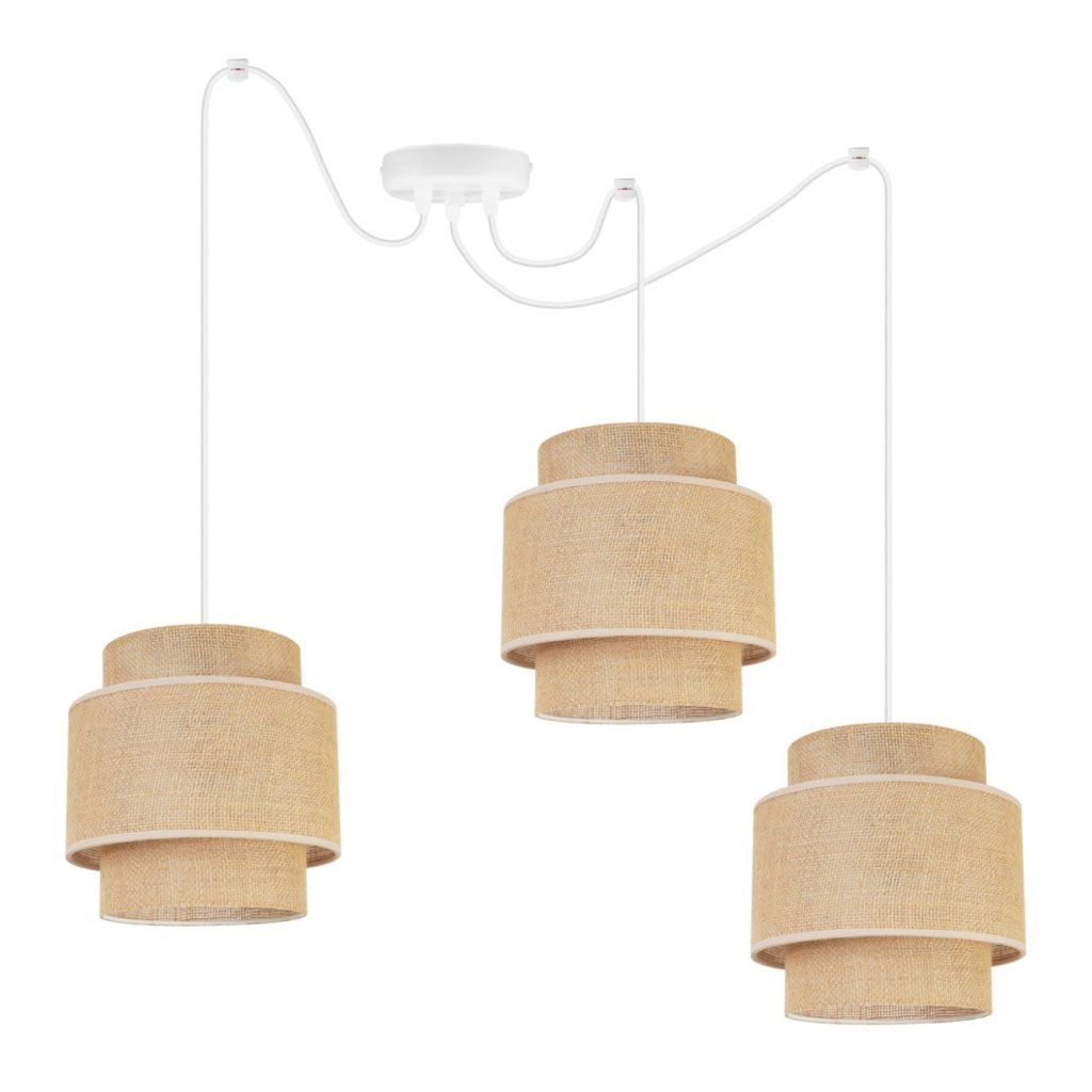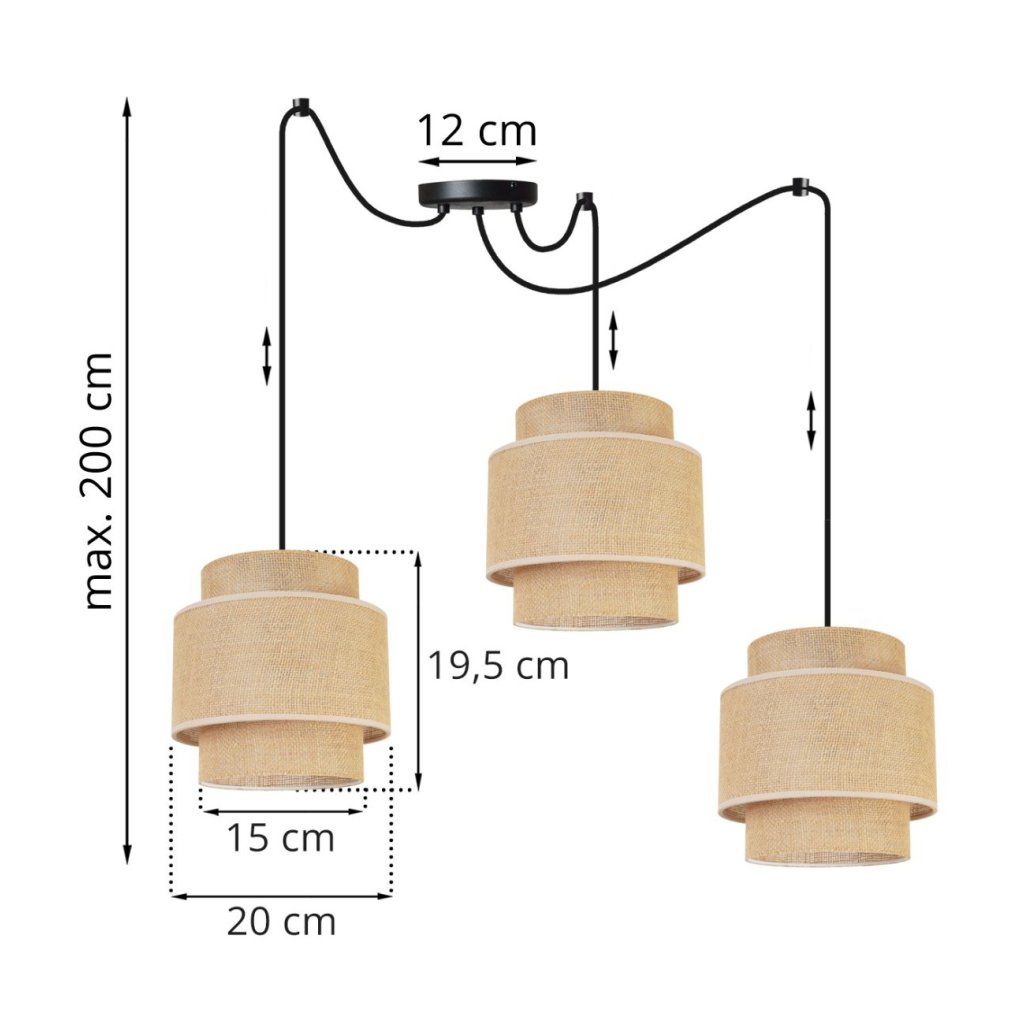 Závěsné svítidlo Boho Spider, 3x jutové stínítko, (výběr ze 2 barev konstrukce)