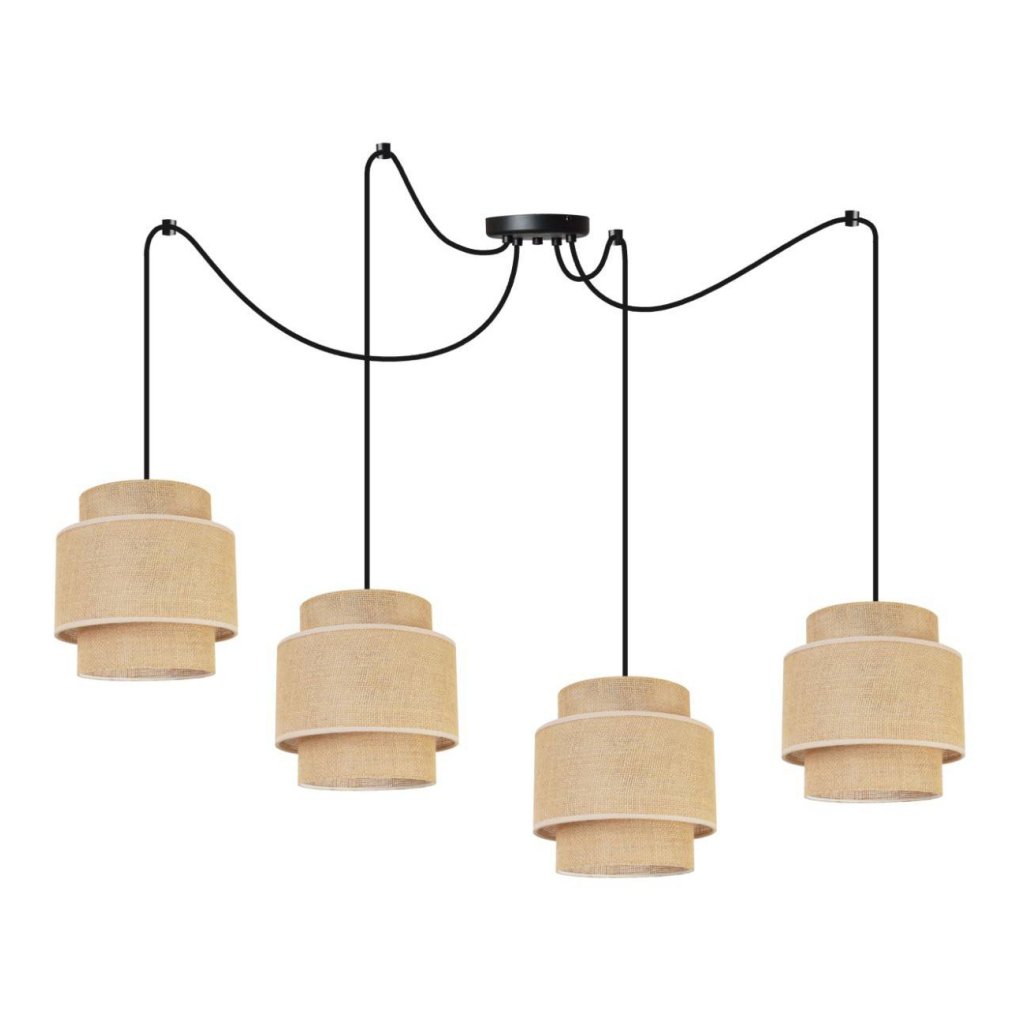 Závěsné svítidlo Boho Spider, 4x jutové stínítko, (výběr ze 2 barev konstrukce)