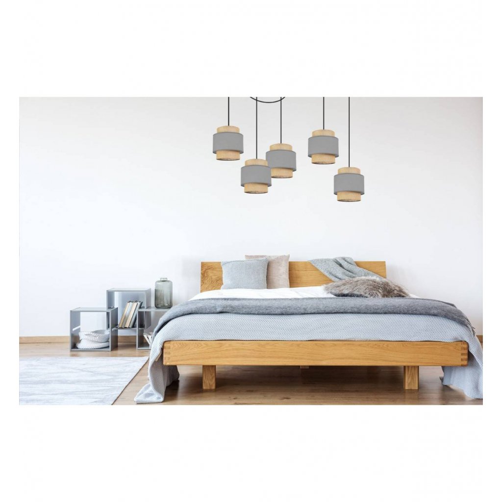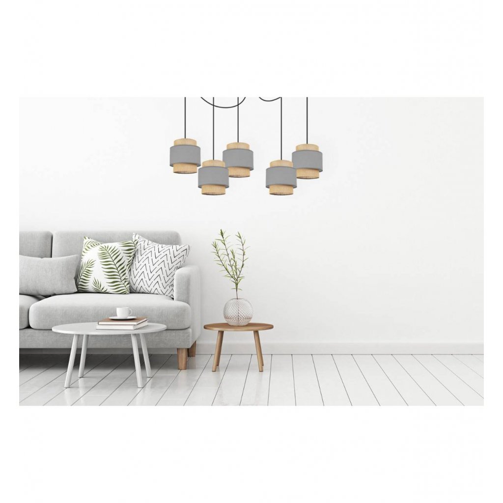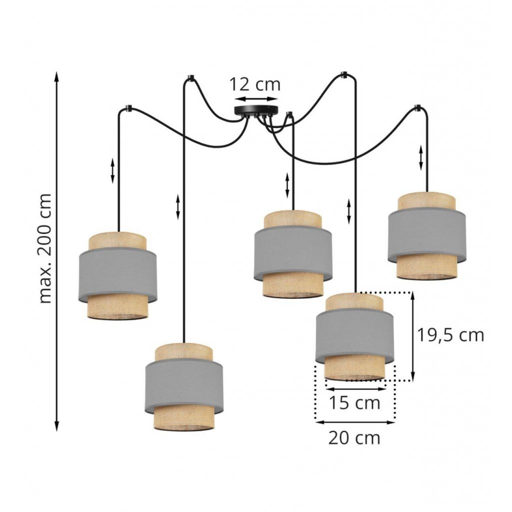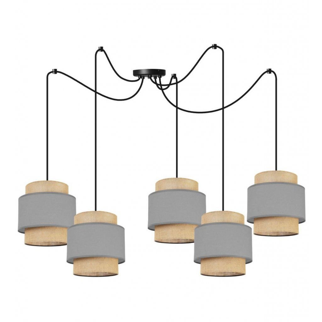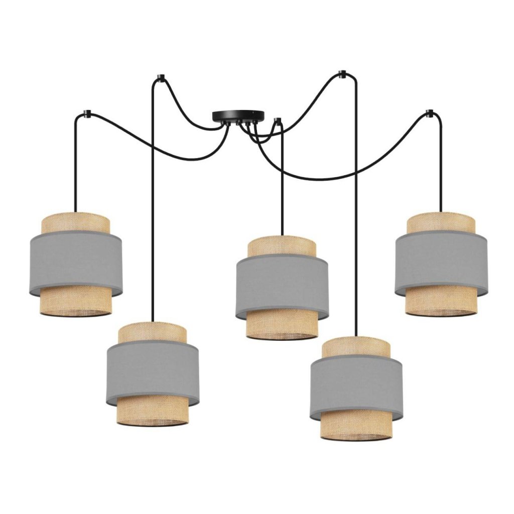 Závěsné svítidlo Boho Spider, 5x jutové/šedé textilní stínítko