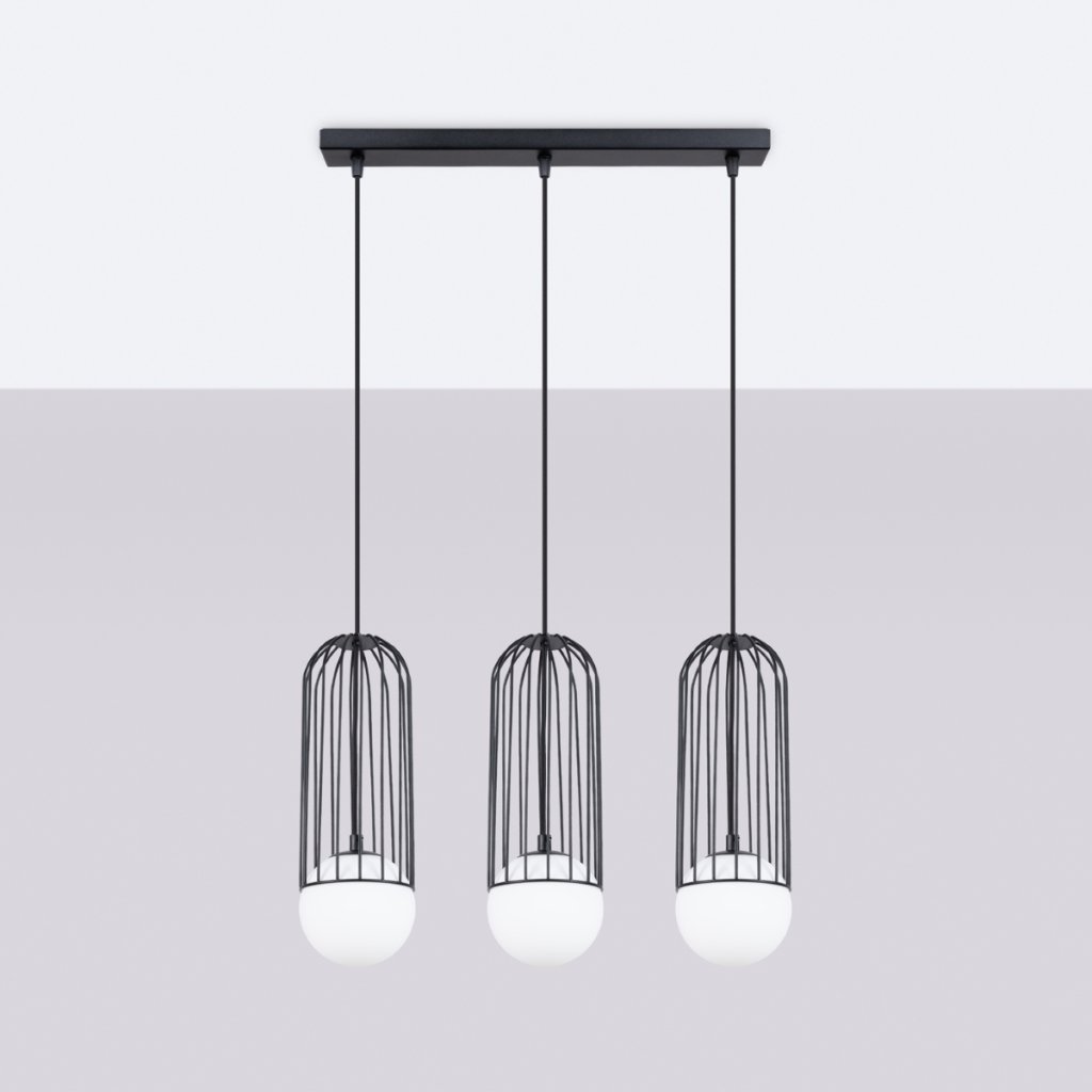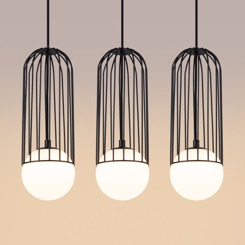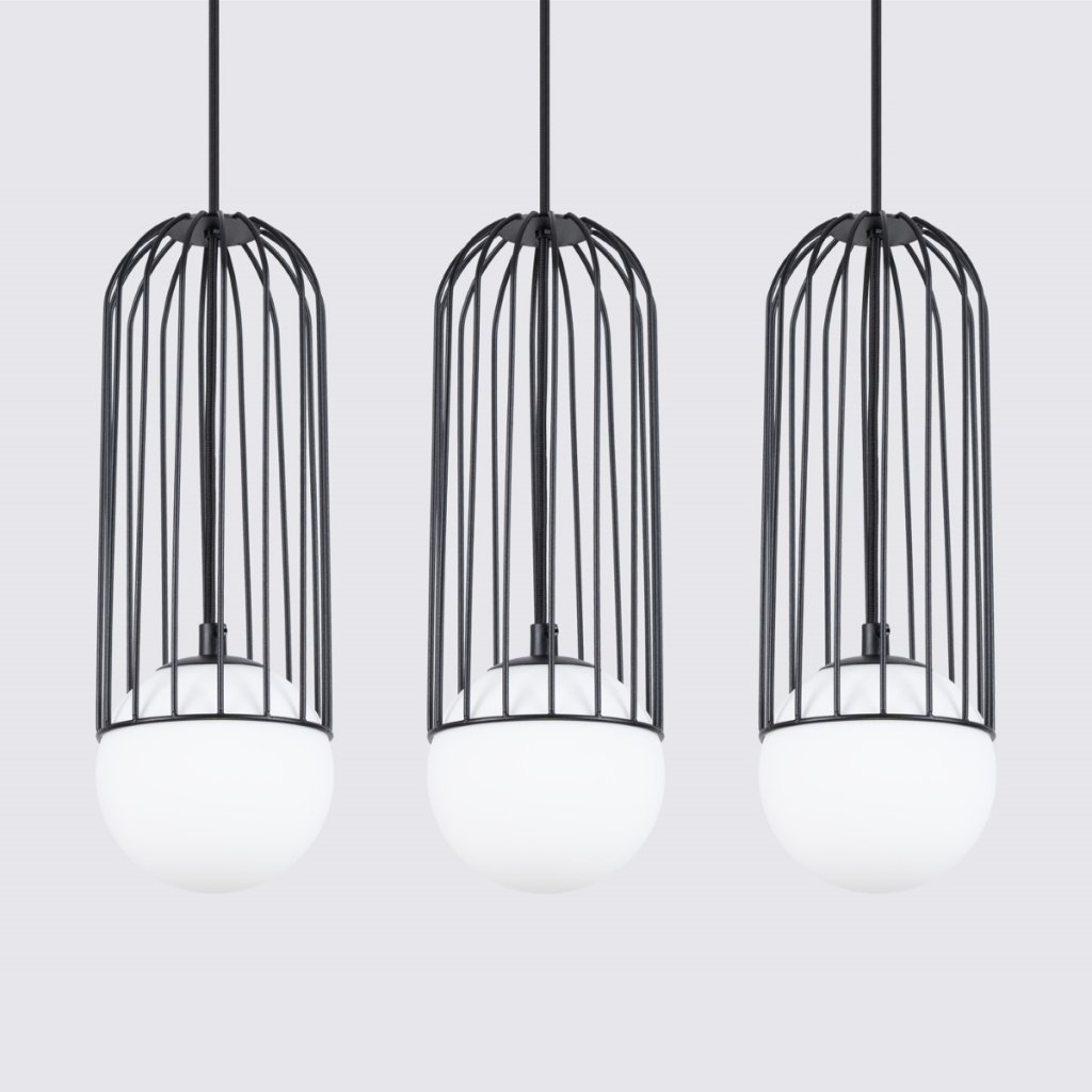 Závěsné svítidlo Brina, 3x skleněné/černé kovové stínítko