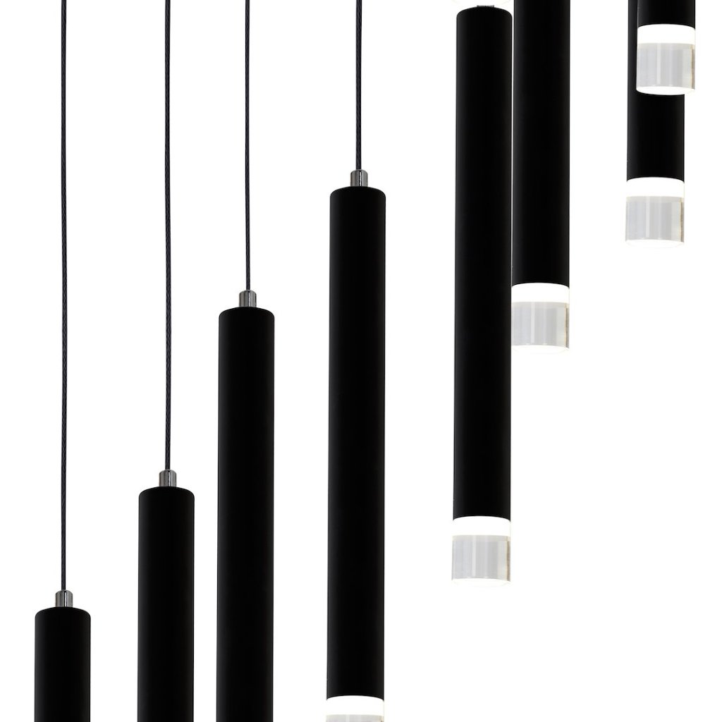 Závěsné svítidlo CARBON zaujme netradiční formou a výjimečným designem , který dodá každému interiéru moderní charakter. Tento model je vybaven 12 bílými kovovými stínítky , které jsou zavěšeny samostatně a umožňují individuální nastavení výšky až do 200 cm . Takové řešení je ideální pro vysoké i nižší prostory, přičemž poskytuje maximální flexibilitu při instalaci.