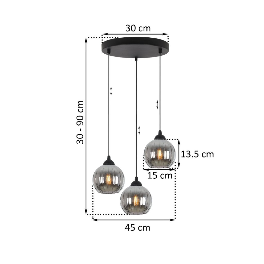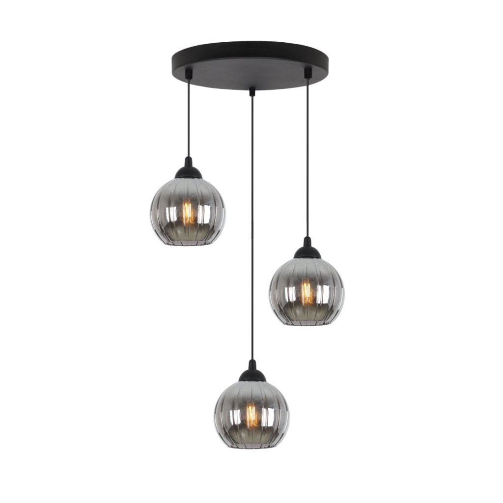 Závěsné svítidlo Costa, 3x grafitové skleněné stínítko, b, o
