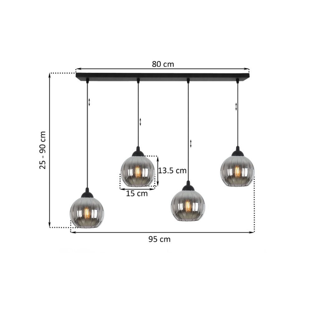 Závěsné svítidlo Costa, 4x grafitové skleněné stínítko, b