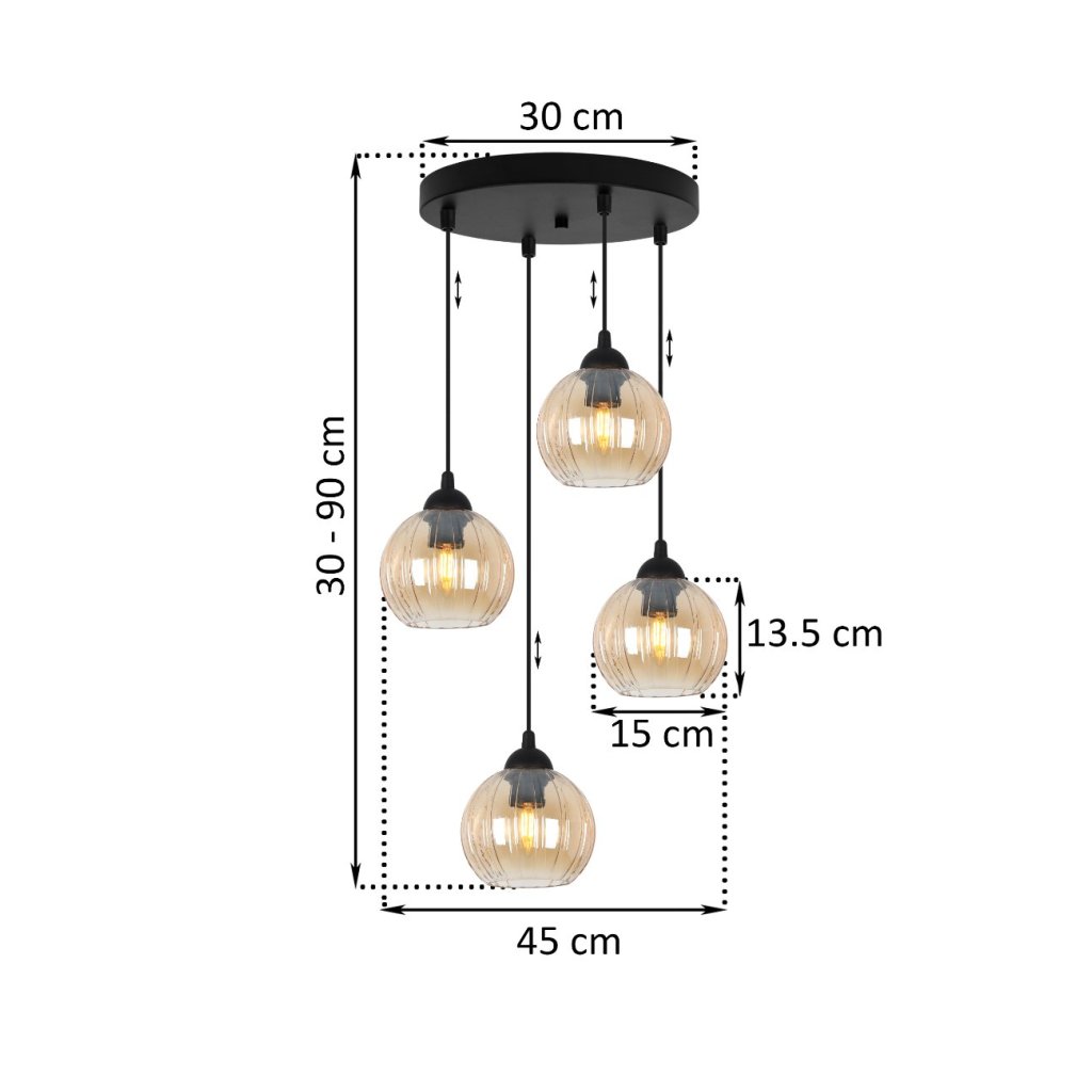 Závěsné svítidlo Costa, 4x medové skleněné stínítko, b, o