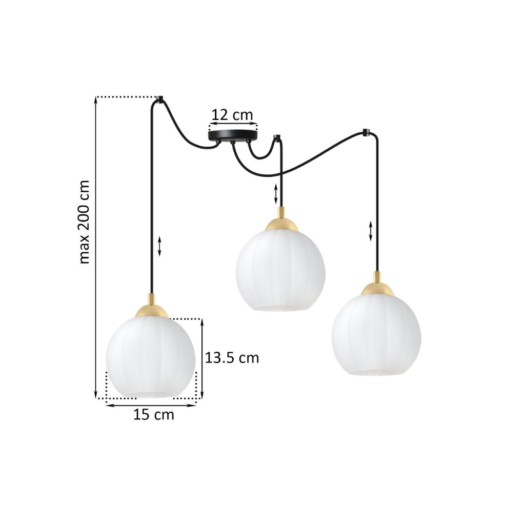 Závěsné svítidlo Costa Spider, 3x bílé skleněné stínítko, b/g