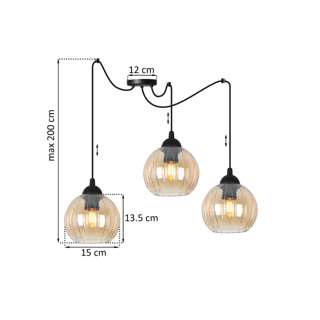 Závěsné svítidlo Costa Spider, 3x mdové skleněné stínítko, b