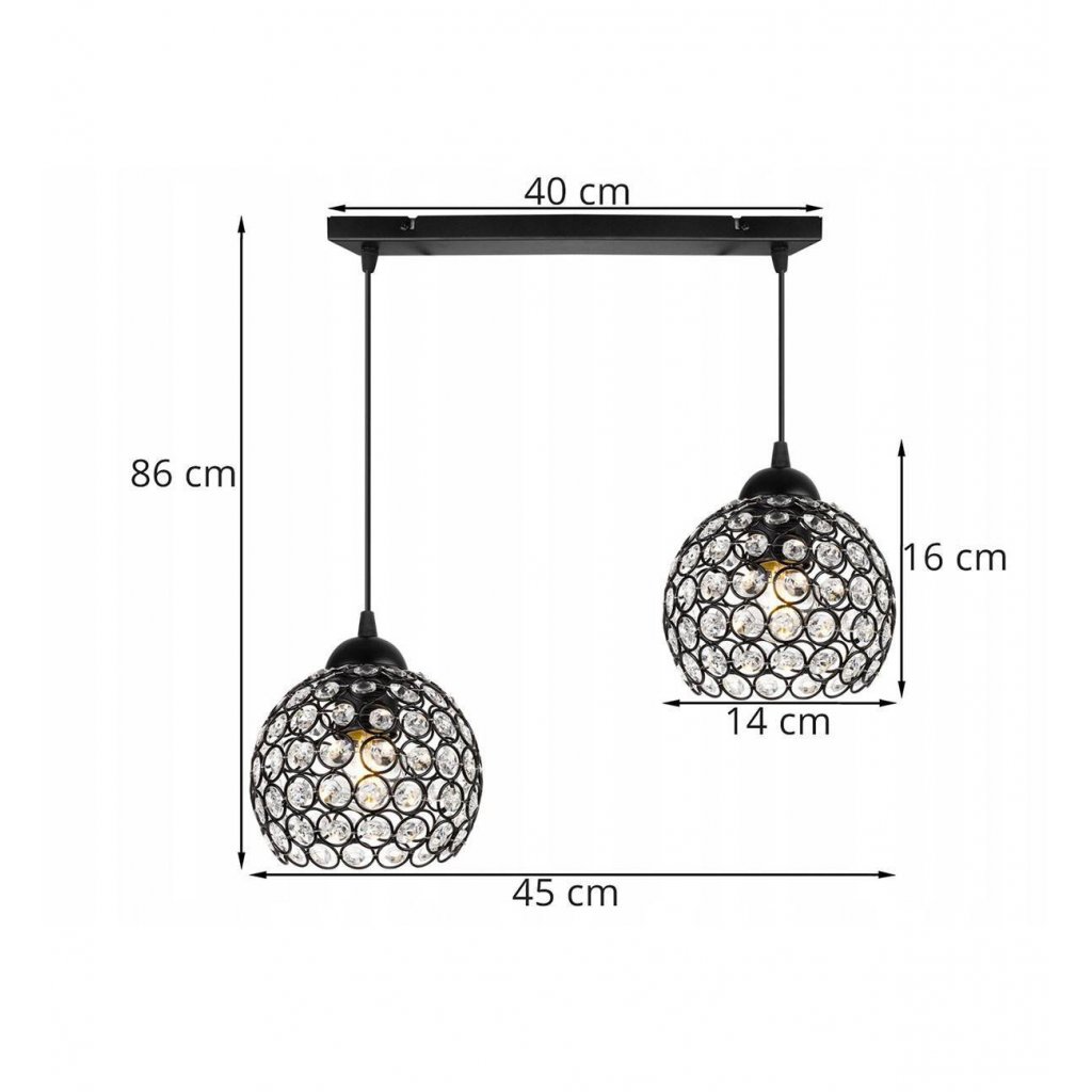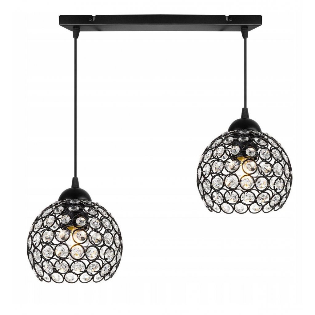 Závěsné svítidlo Crystal, 2x černé křišťálové stínítko