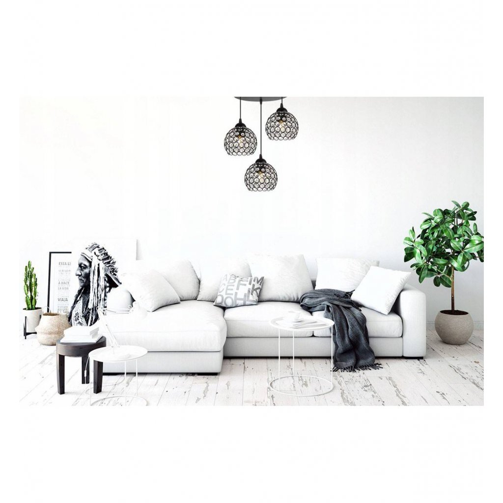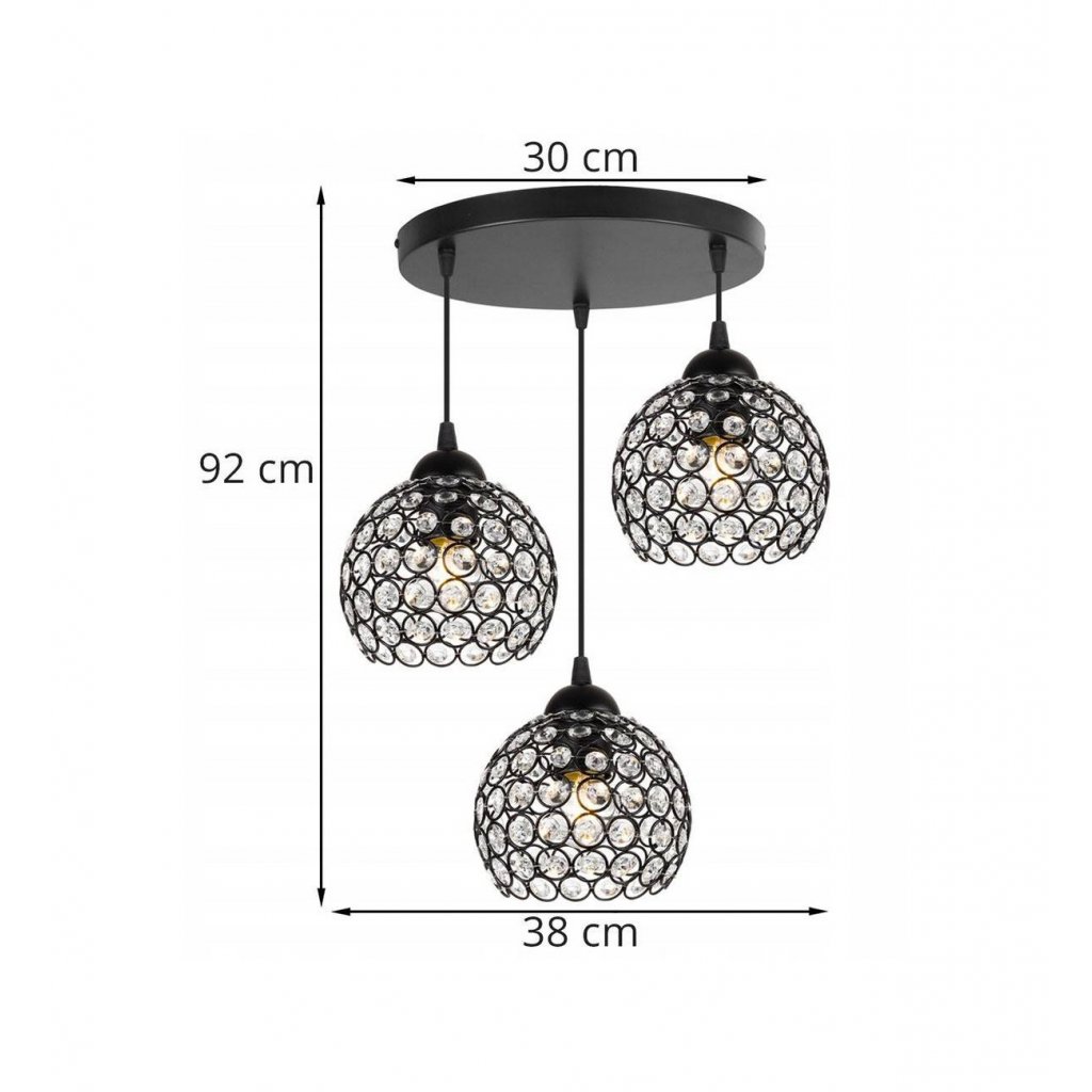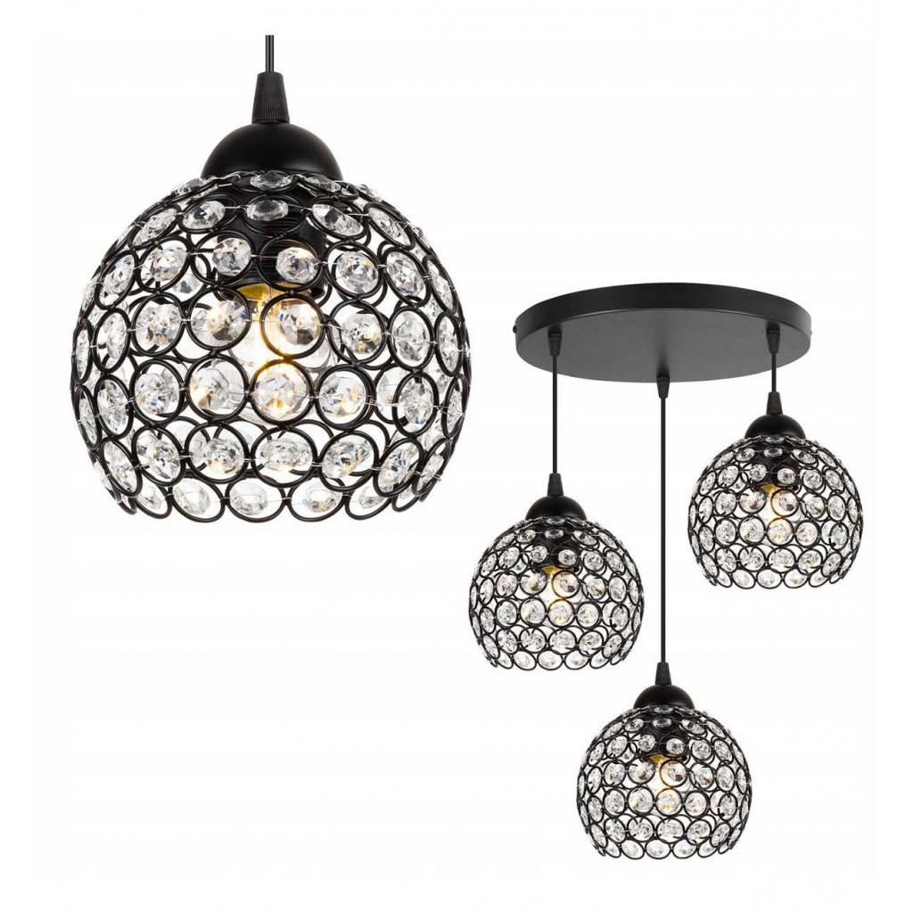 Závěsné svítidlo Crystal, 3x černé křišťálové stínítko,