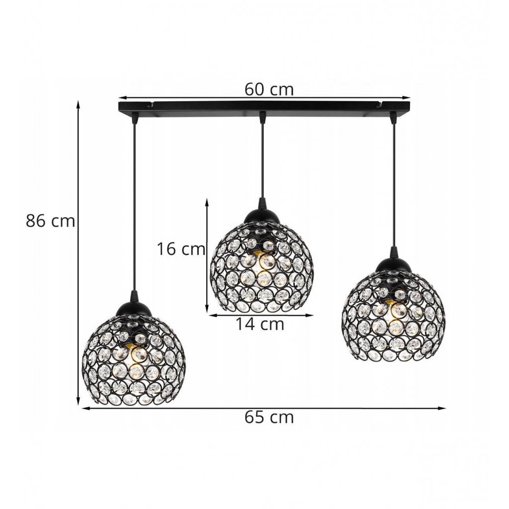 Závěsné svítidlo Crystal, 3x černé křišťálové stínítko
